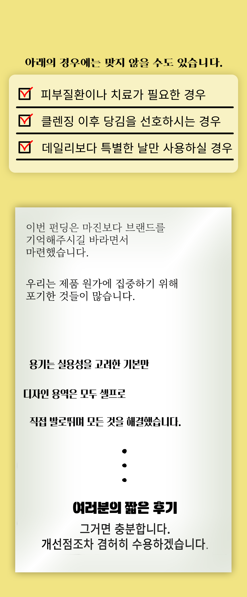 첫 런칭이고 광고와 마케팅에 대한 피디님의 조언이 필요했습니다. 그리고 언제나 할인하는 브랜드가 아니기에.