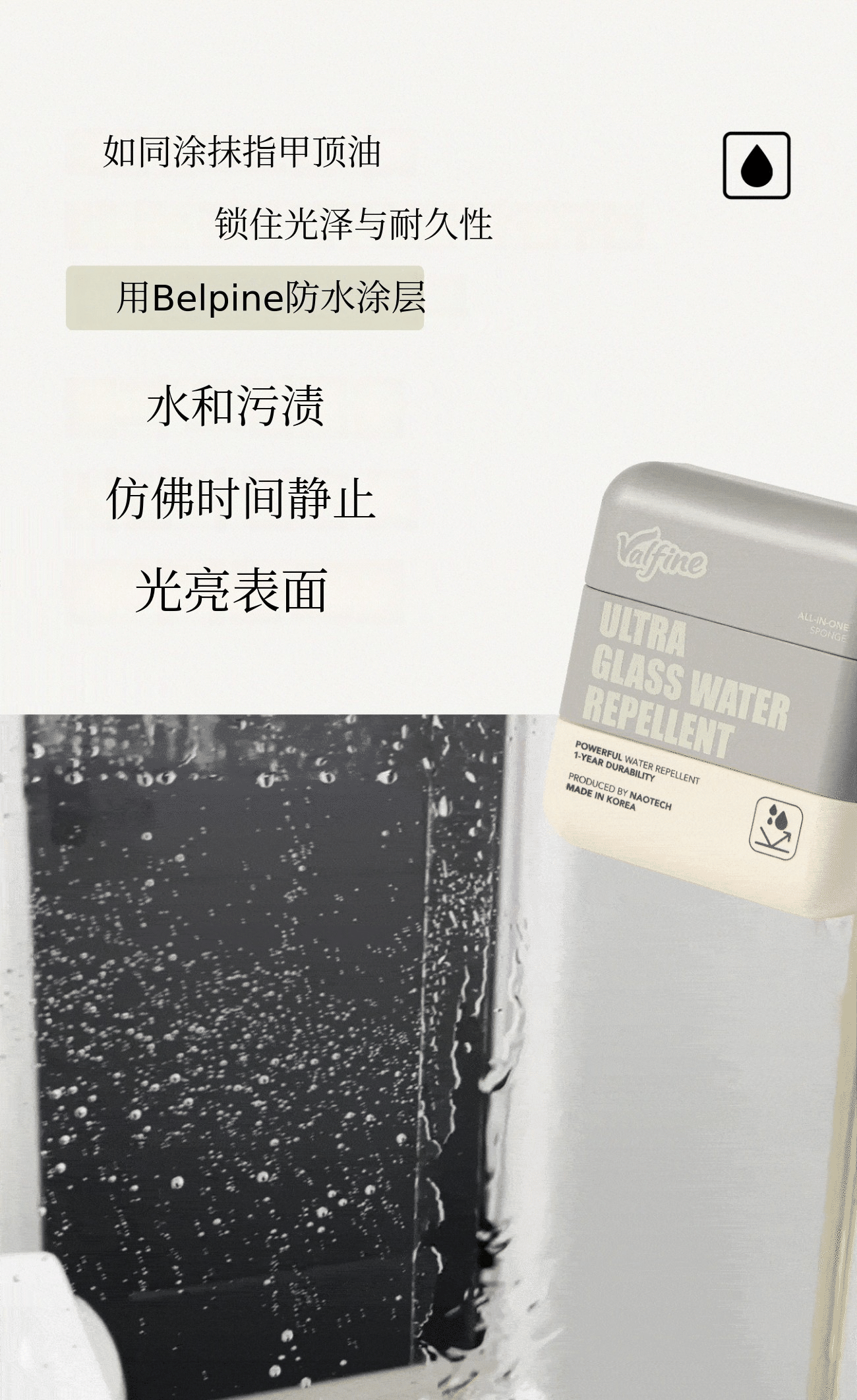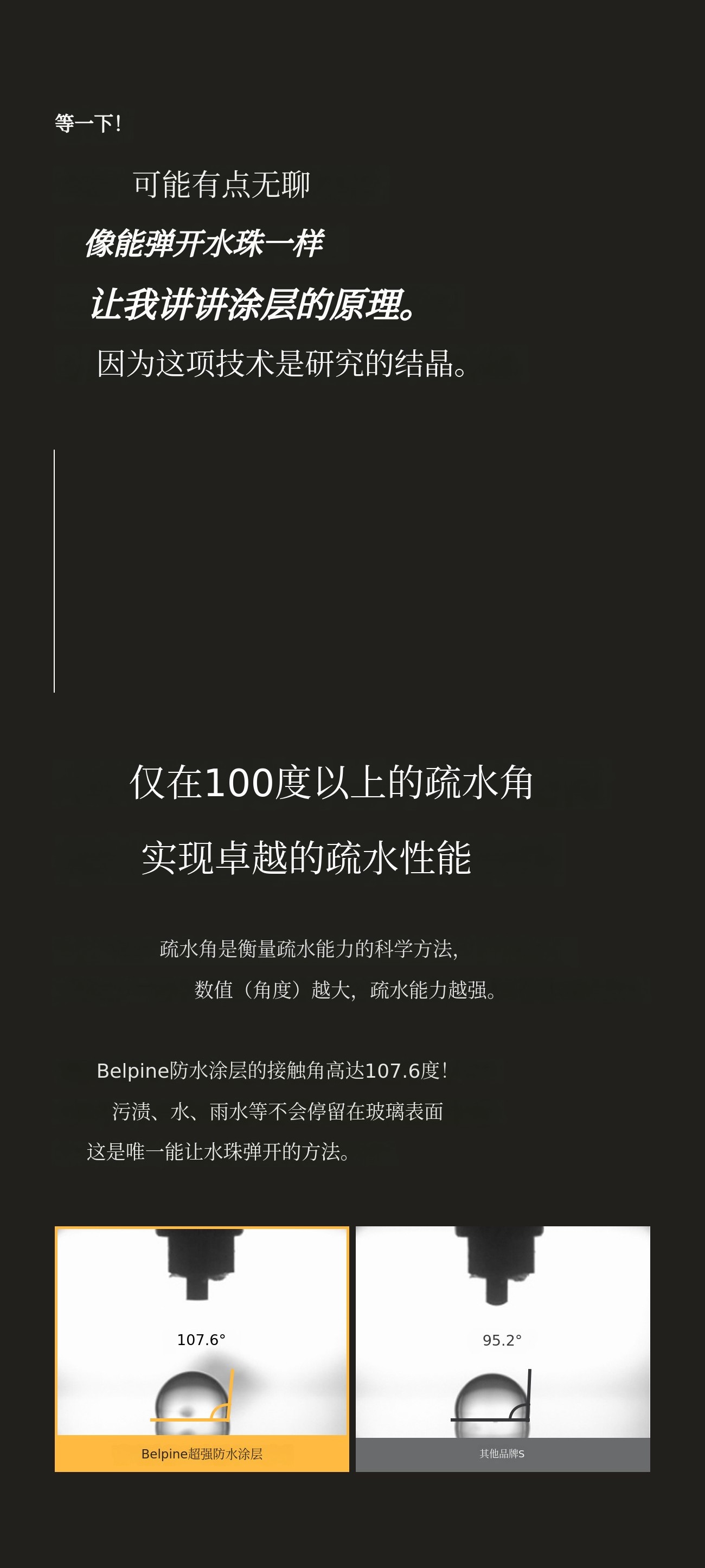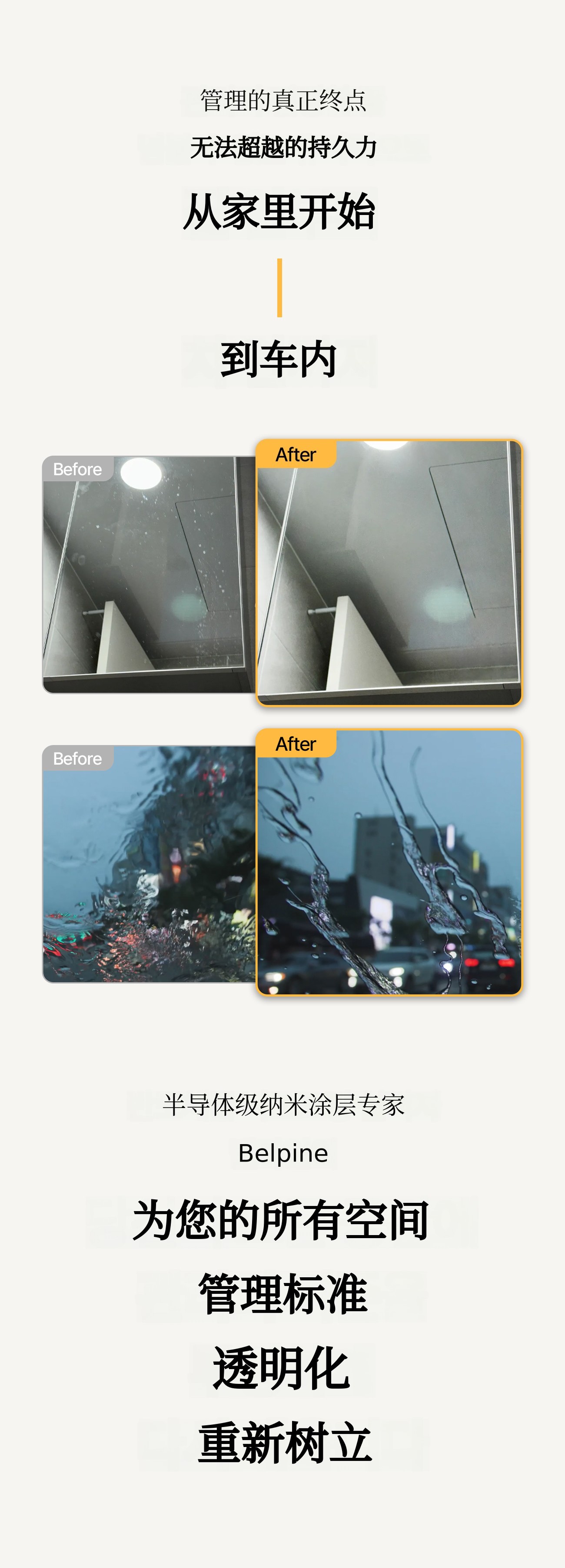 即使辛苦擦拭,玻璃还是会留下污渍,很快又变脏,让您感到压力吧?Belpine与众不同。只需一次用水,一次涂层,就能搞定。我们将为您节省宝贵的时间和金钱。我们对跟风抄袭产品没有兴趣。凭借25年的技术实力,诚实地为生活市场留下真正的优质产品留下典范。