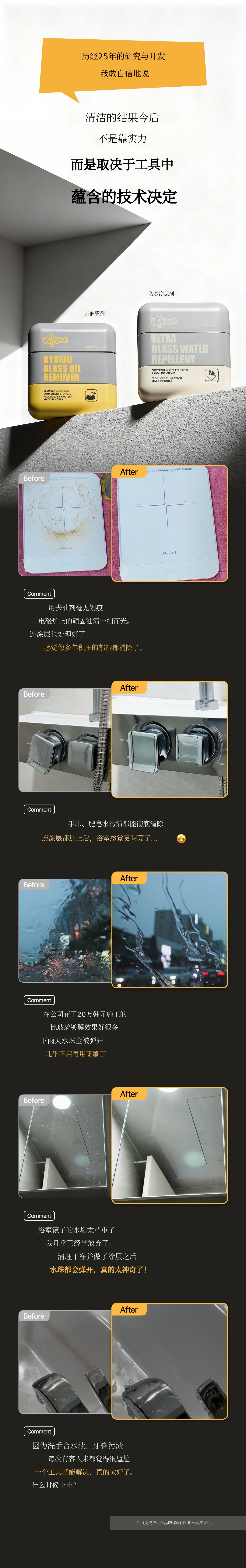 25年的经验,现在以我们的品牌呈现。采用用于半导体工艺的顶级原料制作的玻璃涂层剂和玻璃清洁剂。我们想打破“玻璃管理本来就这样”的偏见。