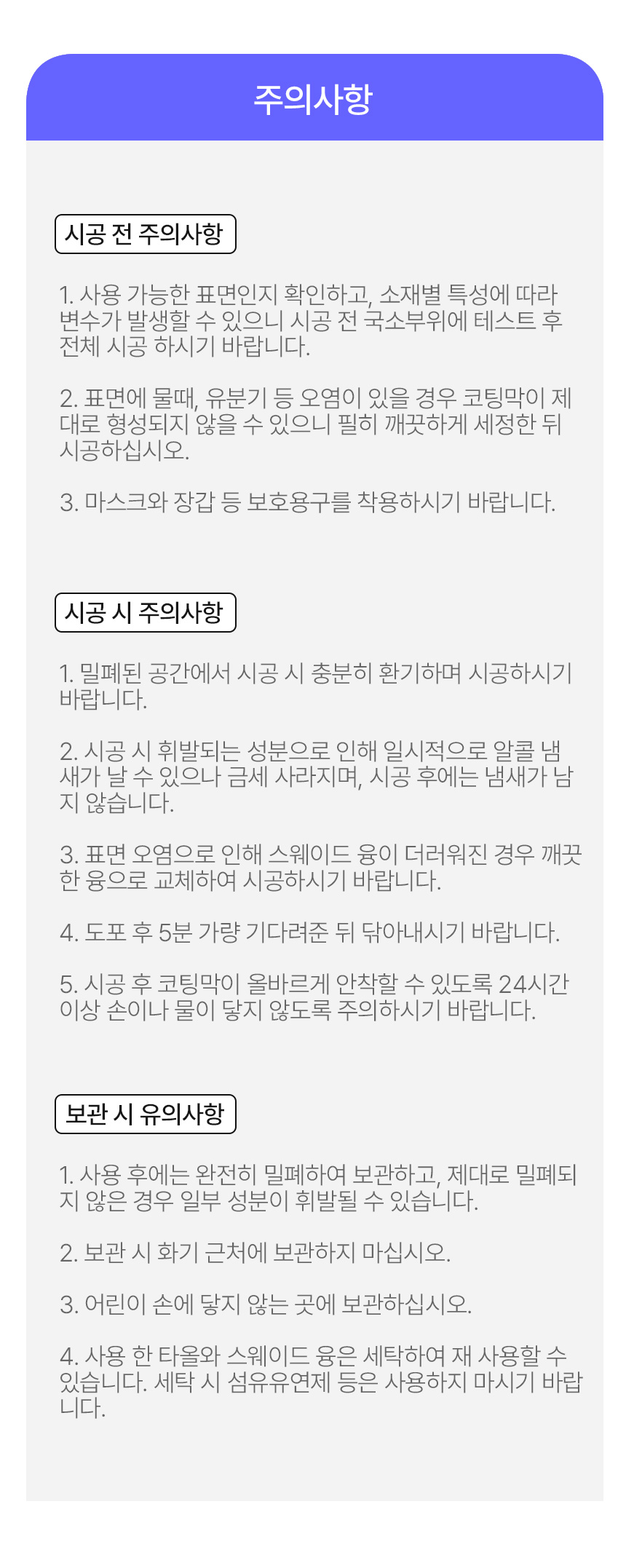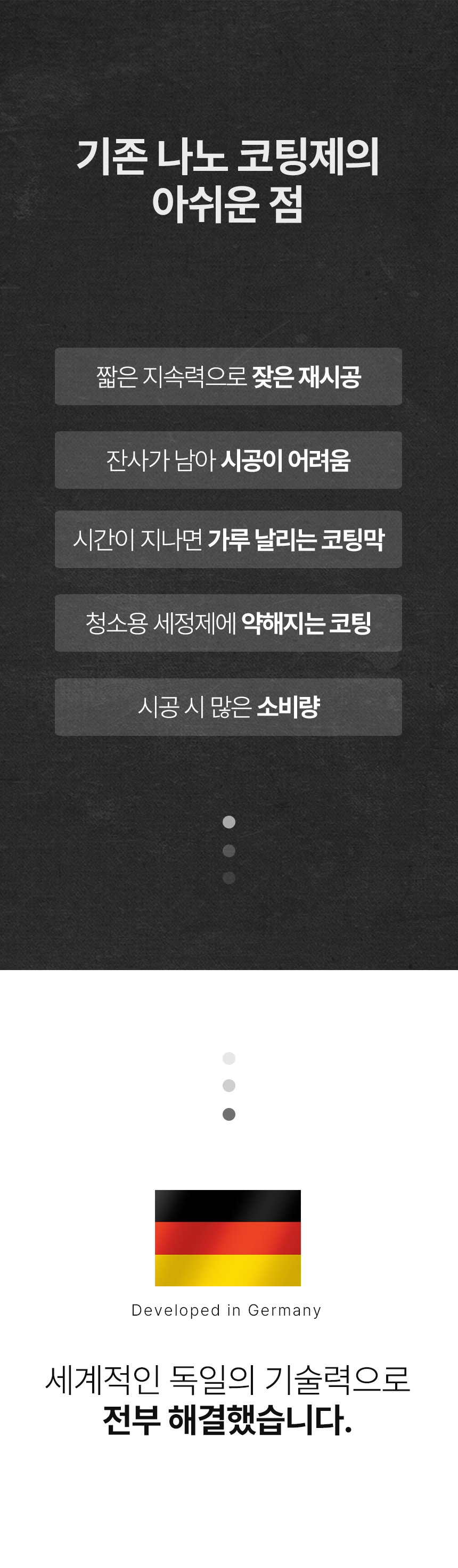 세계적인 독일의 기술력을 그대로 담아 기존 코팅제들에서 느껴지던 문제점들을 해소할 수 있도록 개발되었습니다.