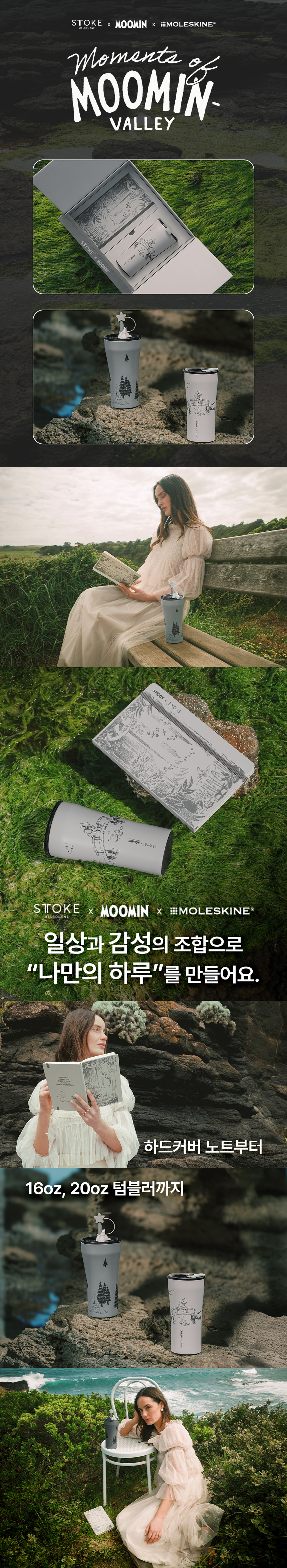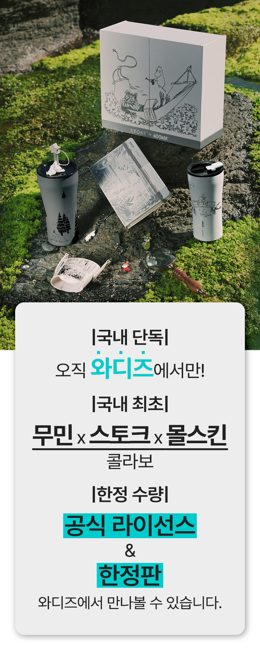 1. ☕ 姆明联名保温杯 - 提供16oz和20oz两种容量选择 2. 📓 姆明×摩乐斯金笔记本 - 硬壳设计,含姆明插画 3. 🎁 Wadiz独家限量版 - 韩国首次公开,享受特别优惠