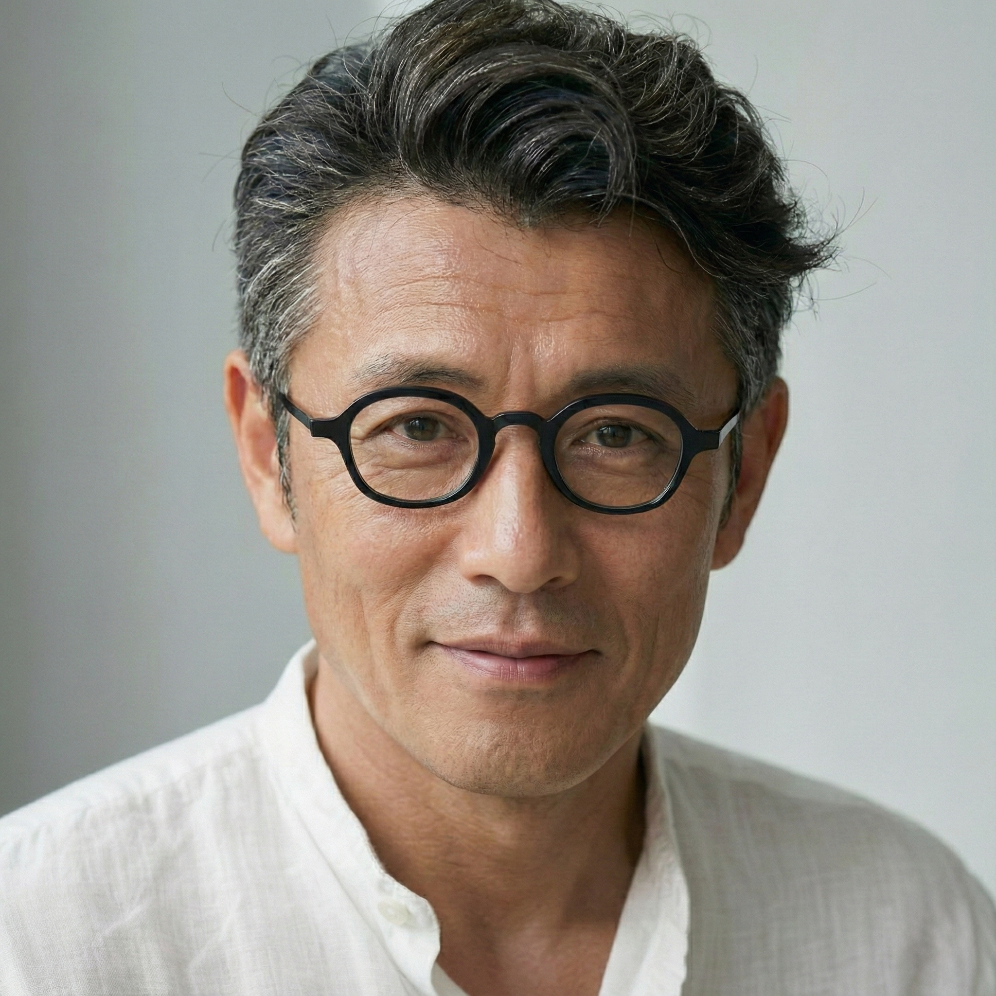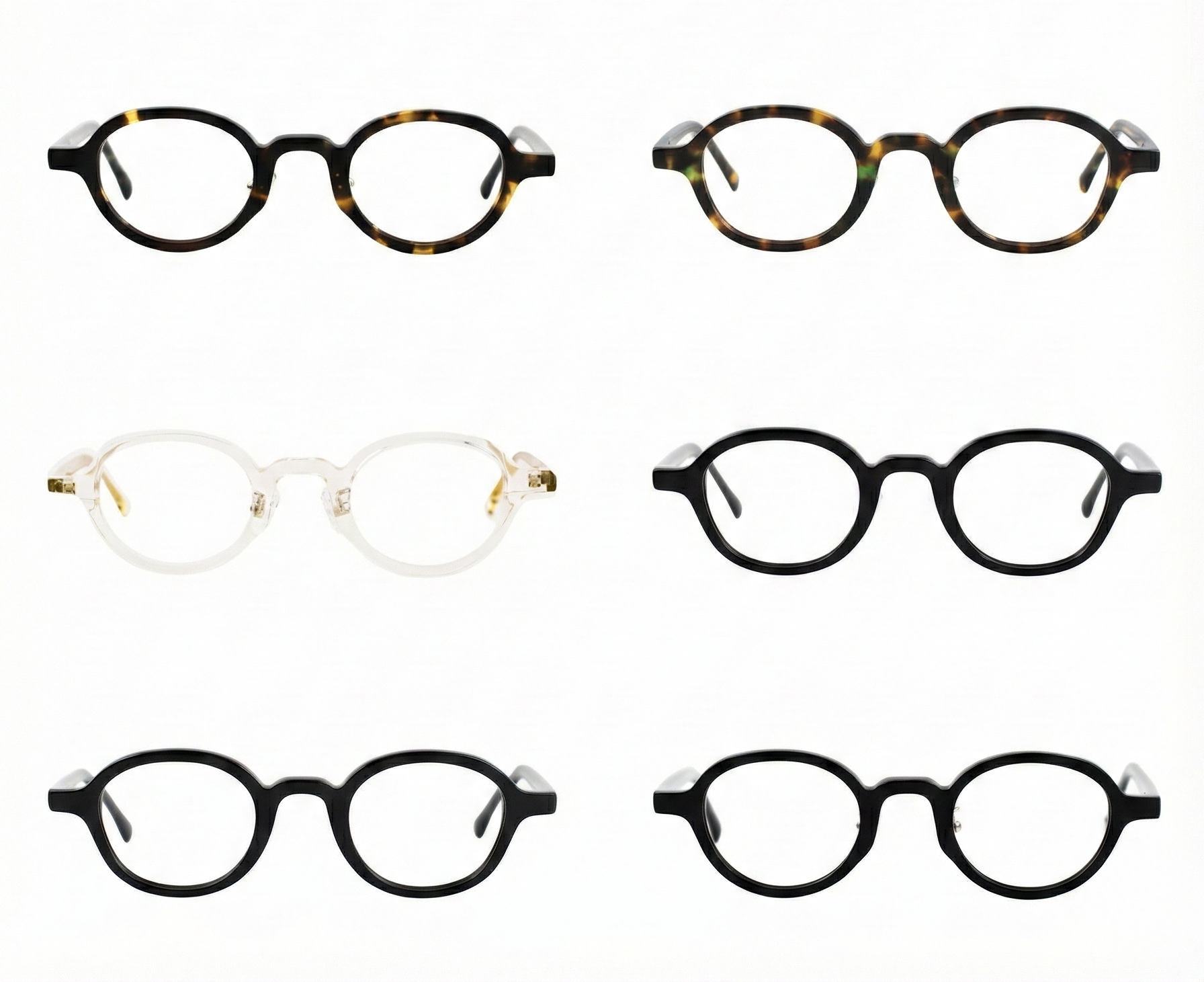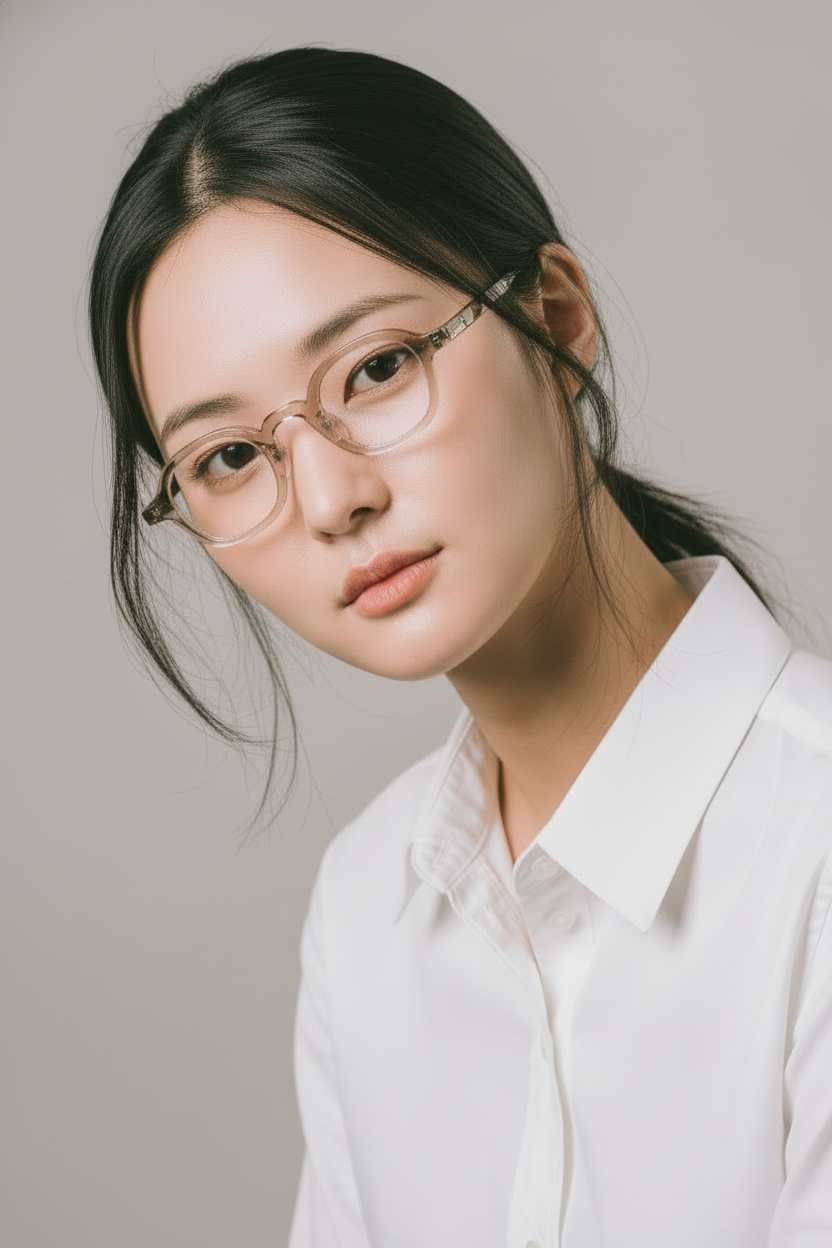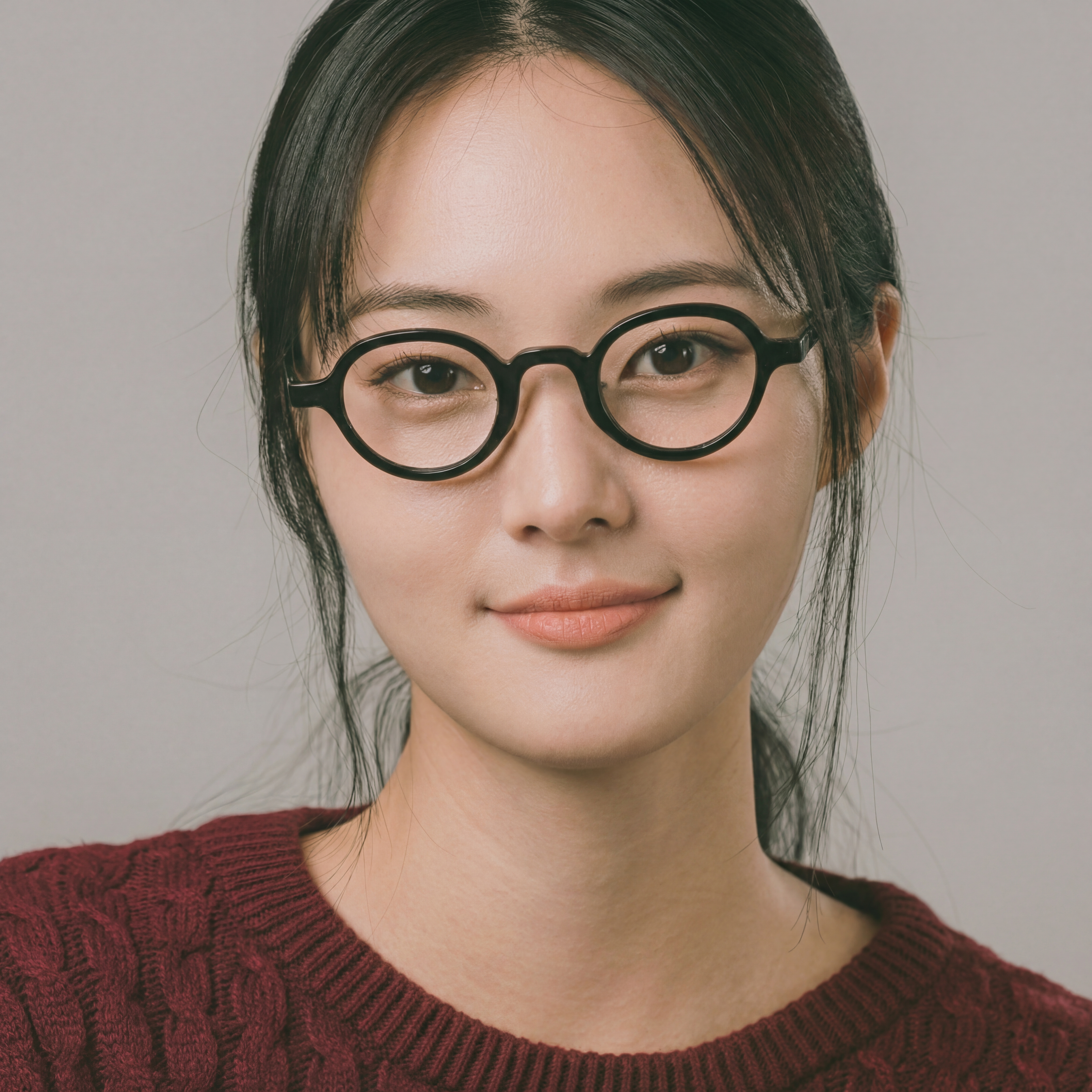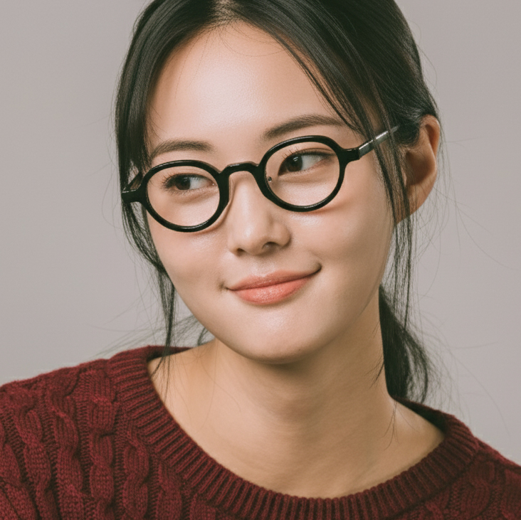 정제된 라운드 쉐입을 기반으로 한 오벌형 프레임으로, 전체적으로 차분하고 지적인 인상이 강하게 느껴지는 디자인입니다.