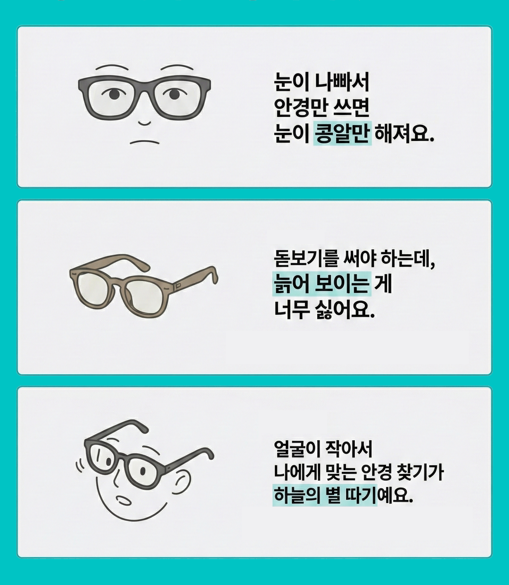 얼굴이 작은 여성분들, 남들과 다른 유니크함을 찾는 분들에게 인생 안경이 되어줄 것입니다.