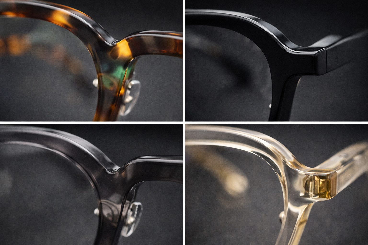 아세테이트는 플라스틱 소재 중 가장 깊이감 있는 컬러와 영롱한 광택을 냅니다.