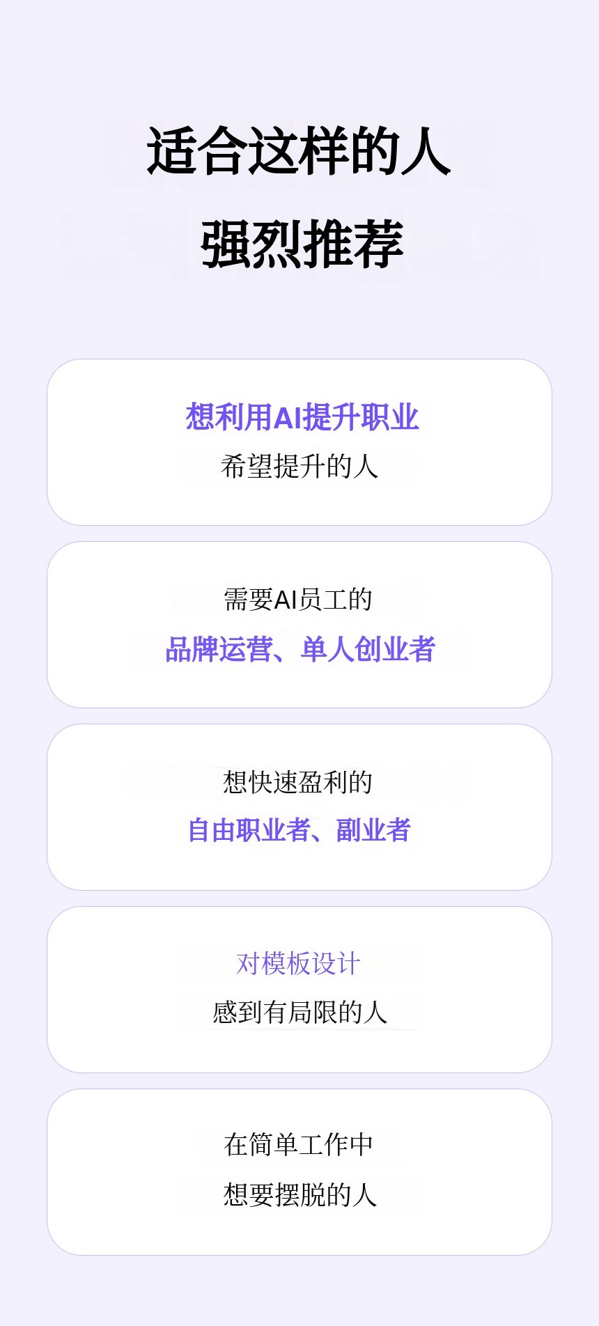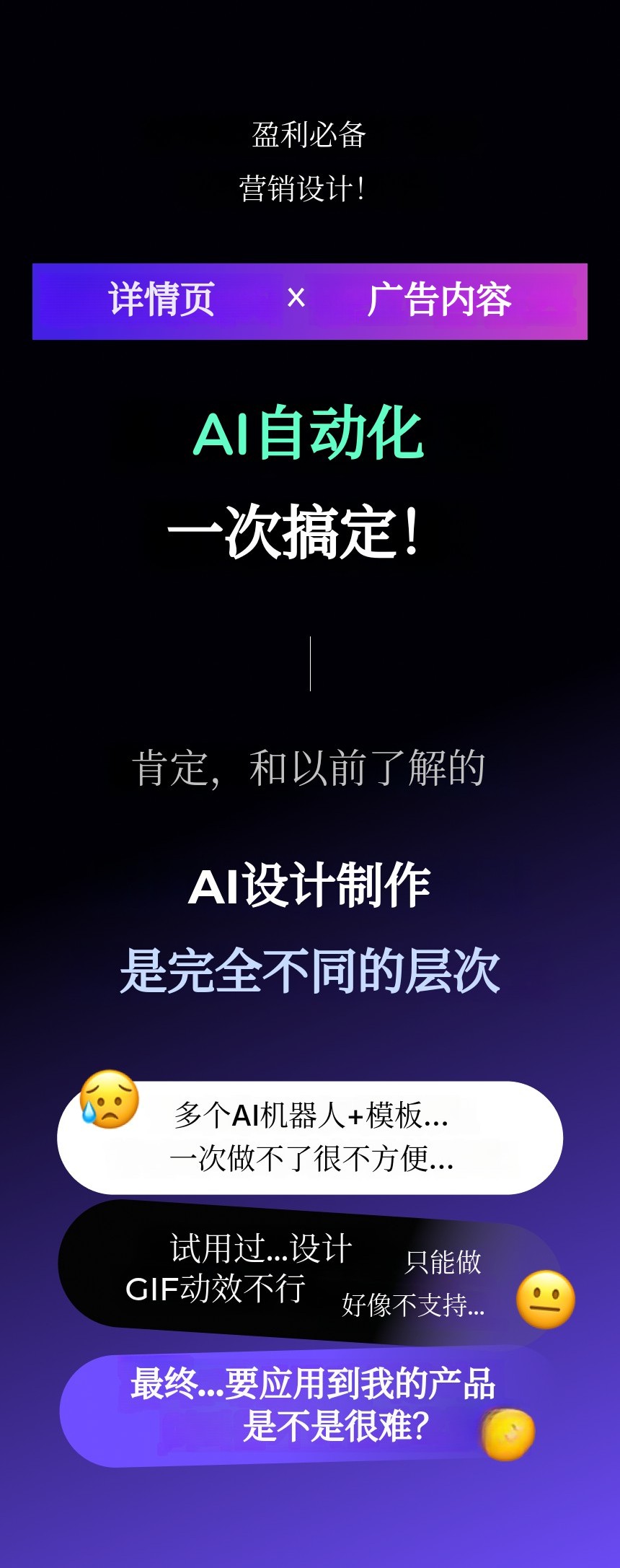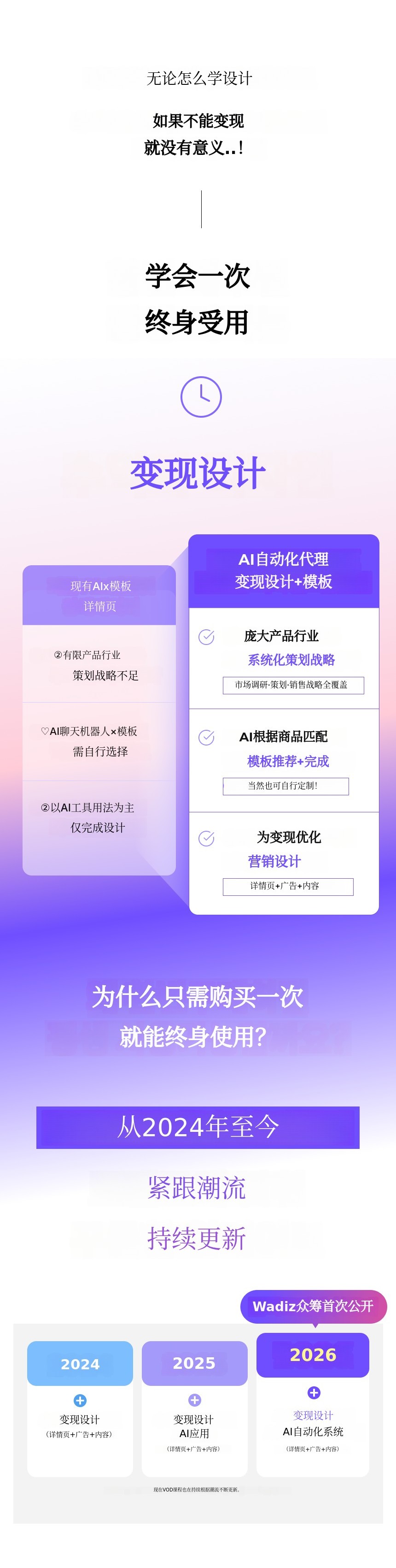 1. 🤖 AI自动化营销设计 - 一键完成详情页、广告和内容设计 2. 📚 1500+模板与挑战 - 多样模板与挑战支持高效设计 3. 🎁 限量特别优惠 - 众筹参与者专享折扣与特别礼包