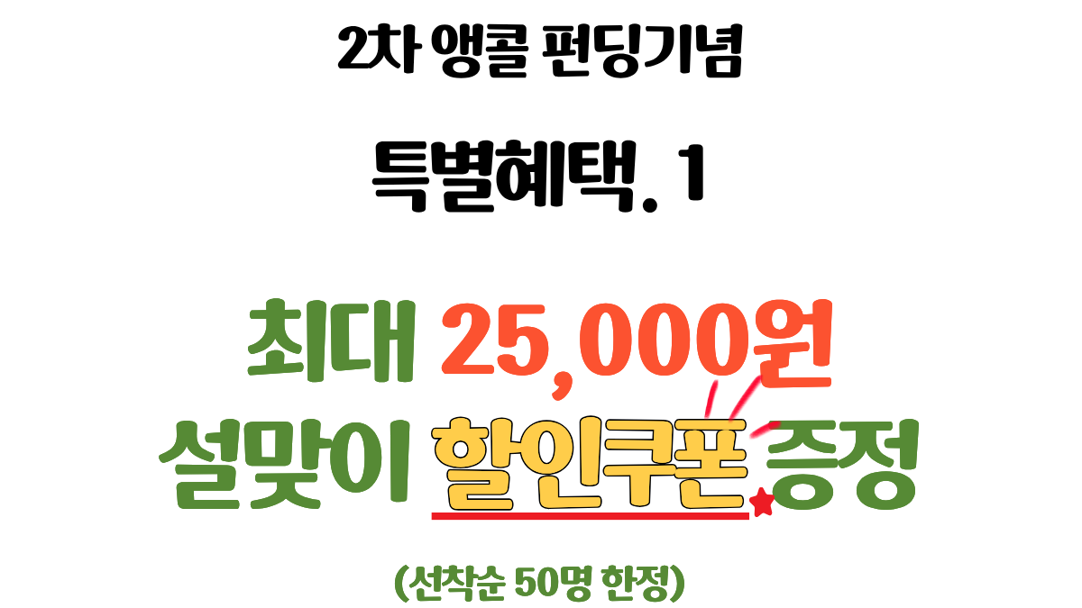 - 지난번 서포터님들의 사랑으로 추가 물량을 확보할 수 있게 되었습니다. 그 보답을 드리고자 다시 찾았습니다.