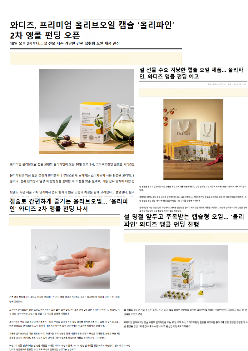 - 안녕하세요, 서포터님들. 올리브오일은 반드시 흡수되어야 진짜 효과가 있다는 믿음으로 연구와 테스트를 반복해온 올리파인 메이커입니다. 수년간 건강기능식품 시장을 경험하며, 원료 중심의 홍보가 아닌 ‘체내 활용 중심’의 제품이 필요하다는 확신을 갖게 되었습니다. 이번 프로젝트는 저의 개인적인 건강 경험과 과학적 데이터 위에서 탄생했습니다. 저와 같은 고민을 가진 분들에게 진짜 해답을 드리고 싶습니다.
