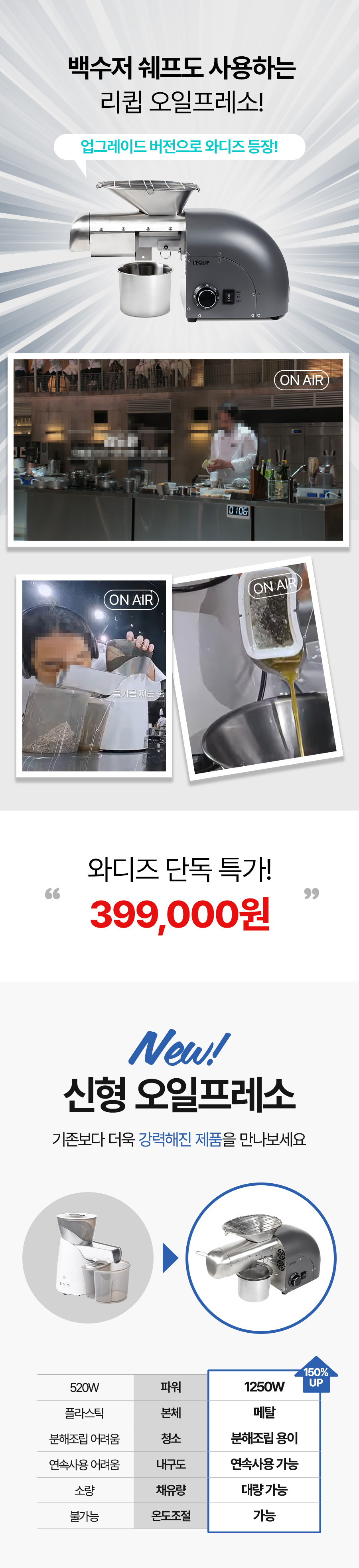 1. 🛢️ 利酷油压机 - 1250W强劲动力,卫生不锈钢喷嘴 2. 🌿 新鲜健康油脂制作 - 无酸败顾虑,使用优质原料榨取新鲜油脂 3. 🎁 WADIZ独家优惠 - 厨师认可升级款,特价限时发售