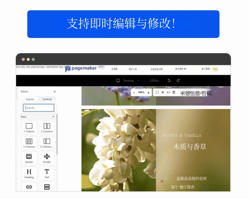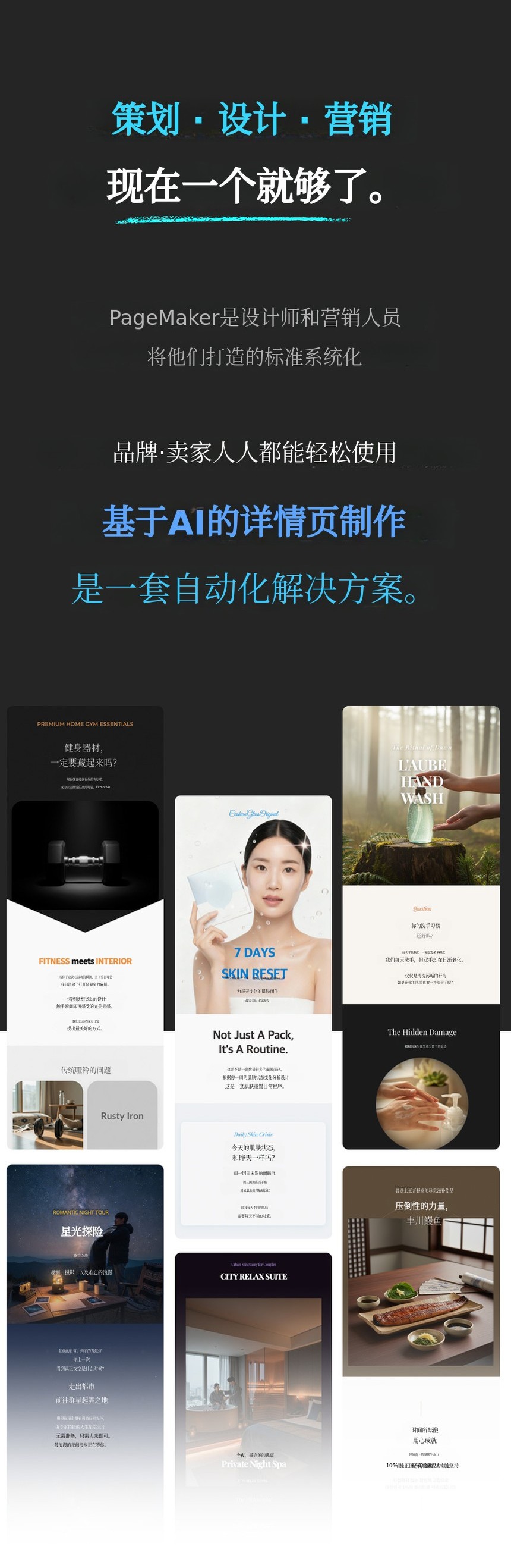 A. PageMaker 是面向卖家的全方位 AI 营销制作与运营服务。基于企业/商品分析,帮助完成从营销文案生成到发布的全过程,不仅提供横幅、详情页等内容制作,还涵盖照片修图及运营所需的各类设计工作,一站式完成。