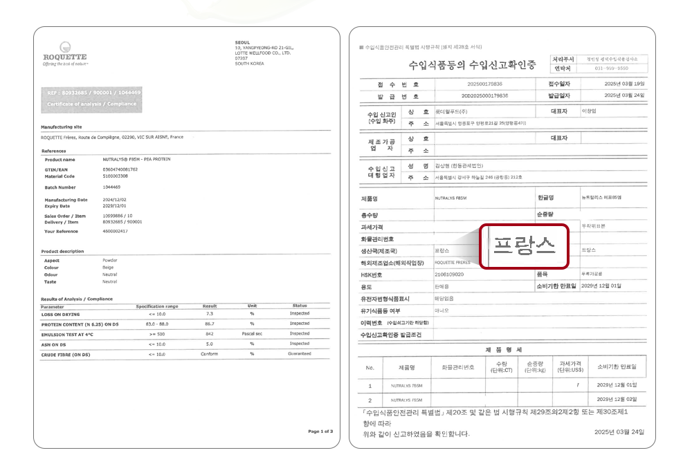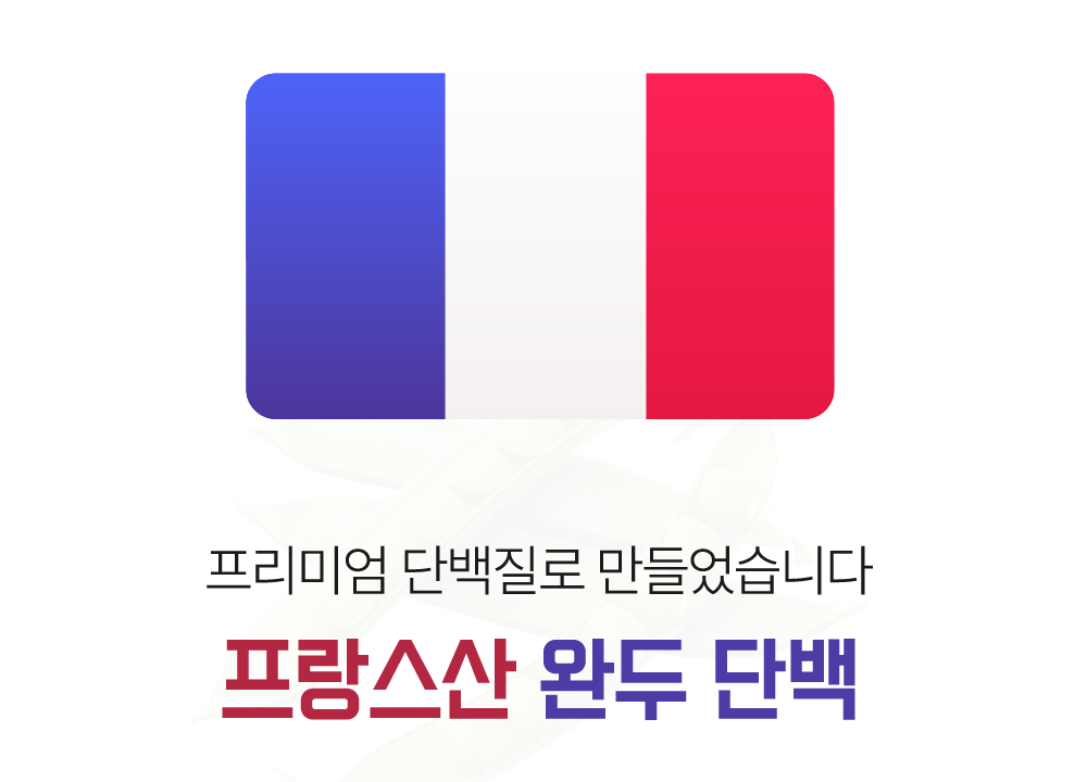 프랑스산 완두 단백은 콩 특유의 비릿함 없이 깔끔하고 고소한 맛이 나고 특히 완두콩 단백질은 알레르기 유발 가능성이 낮고 소화가 매우 잘 됩니다.
