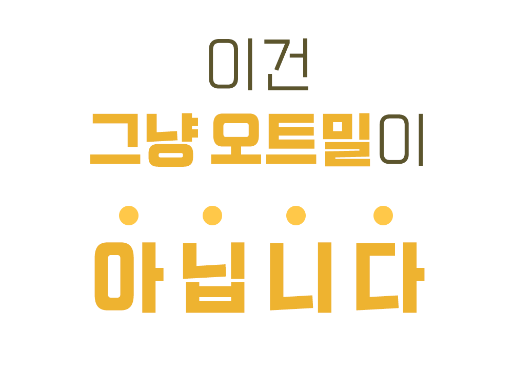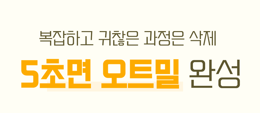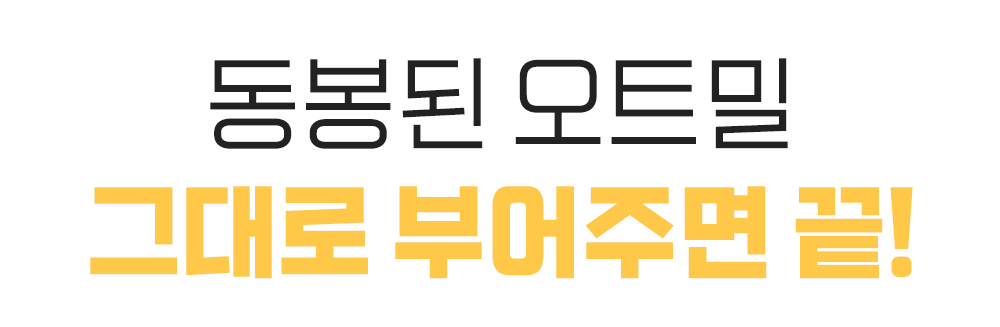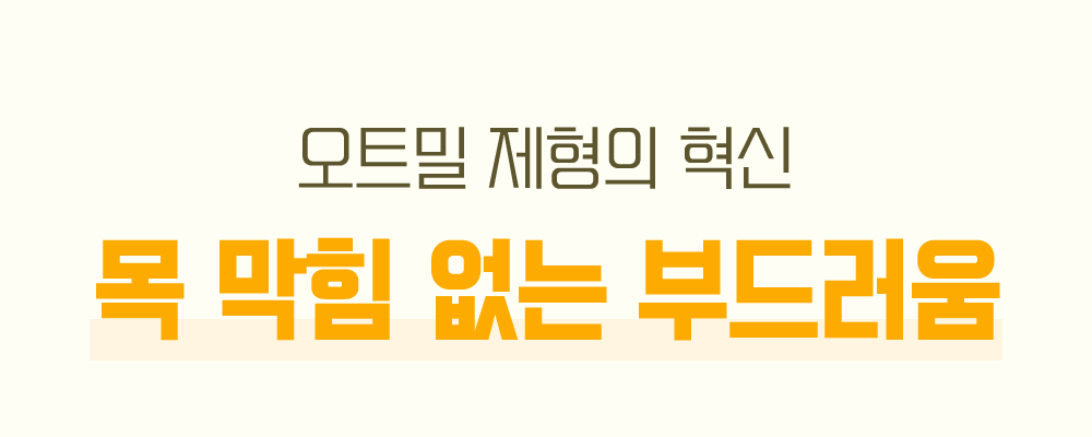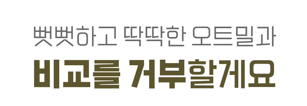 기존 오트밀이 시멘트처럼 꾸덕하고 뻑뻑해서 삼키기 힘드셨나요?우리는 한국인이 가장 편하게 즐길 수 있는 최적의 점도를 찾아냈습니다.