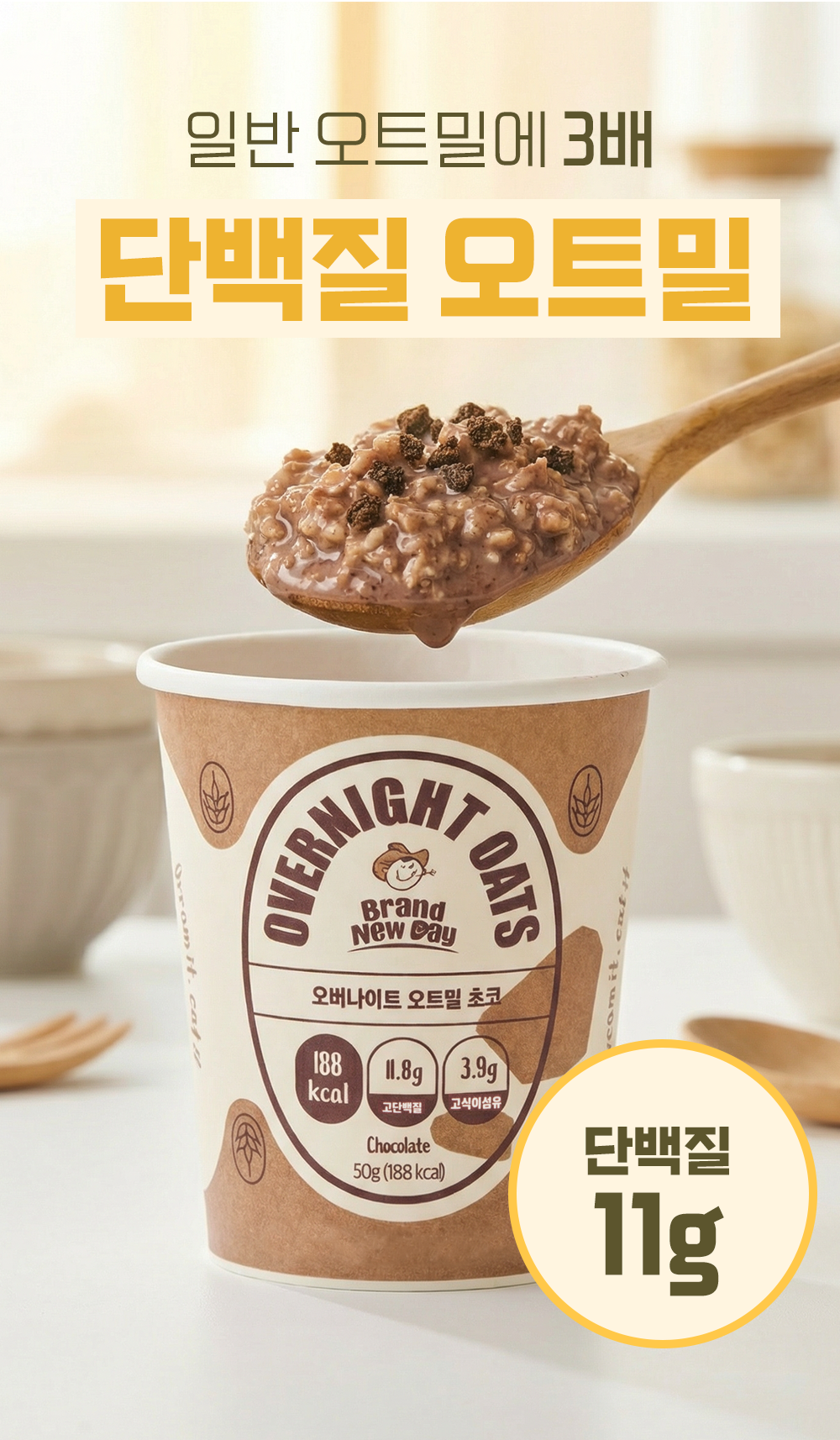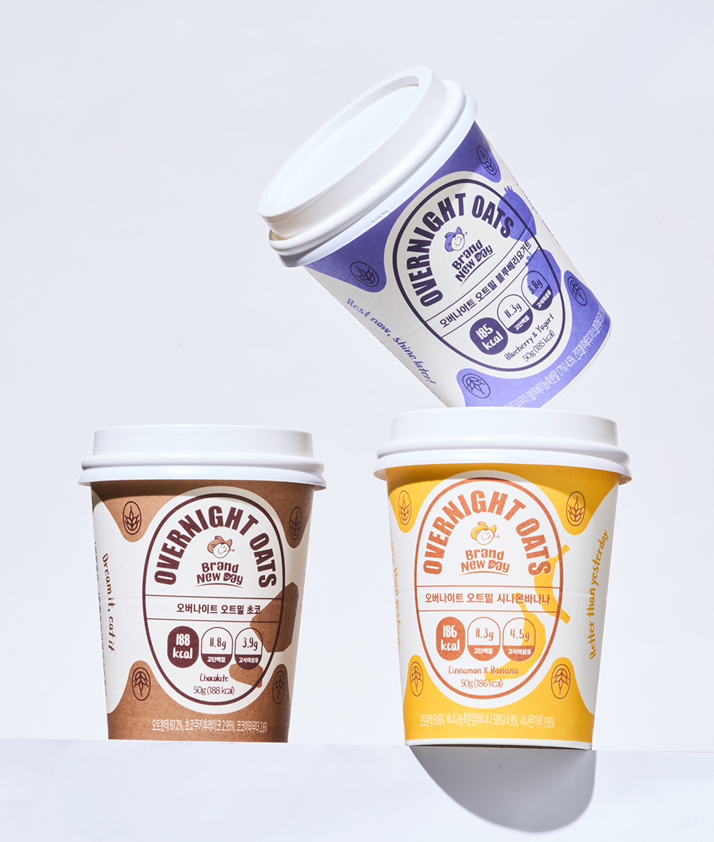 우리의 하루는 아침 한 끼에서 달라질 수 있다고 믿습니다. 브랜뉴데이 오버나이트 오트밀은 바쁜 일상 속에서도 몸과 마음을 가볍게 깨우는 건강한 선택이 될 수 있도록 만들어졌습니다.