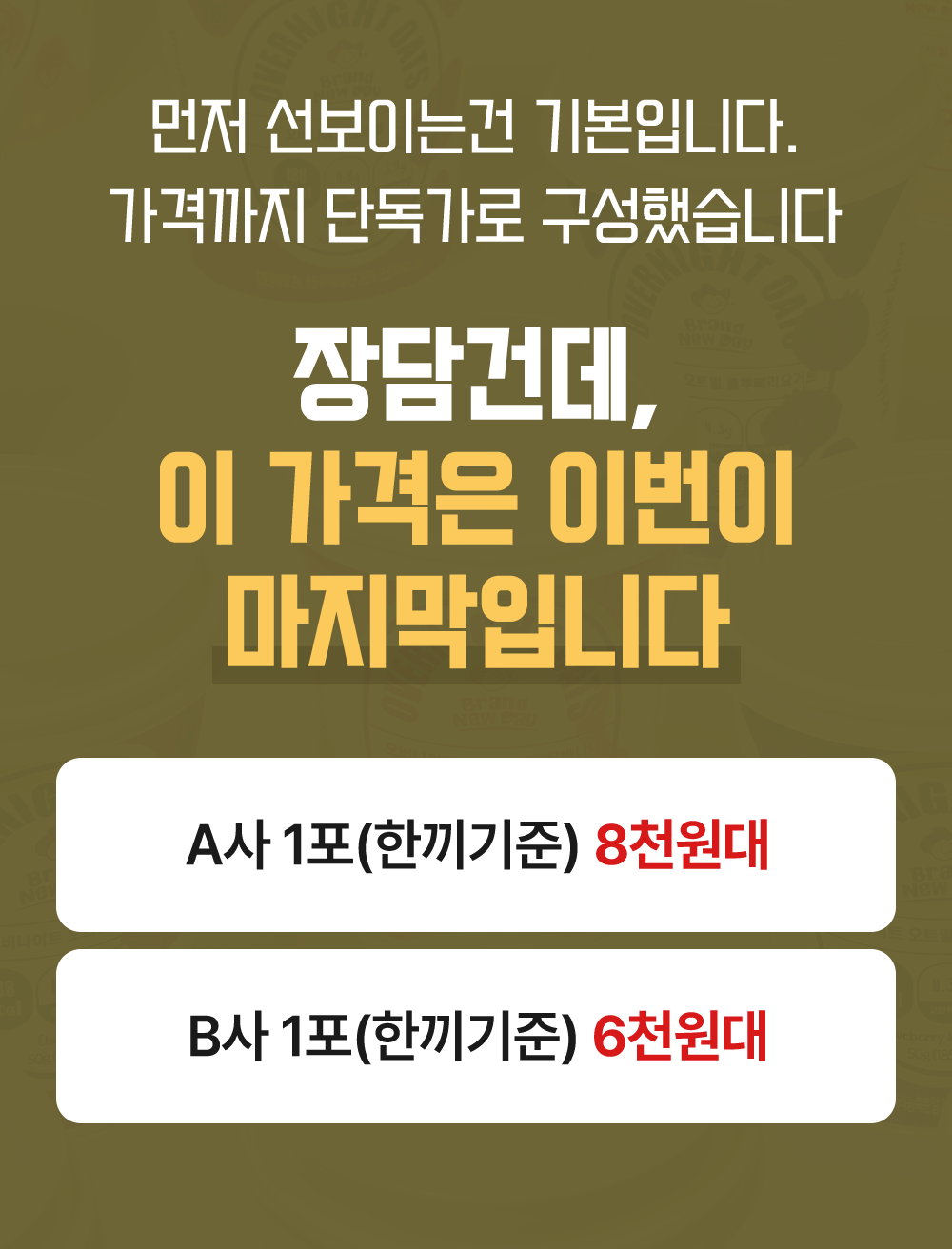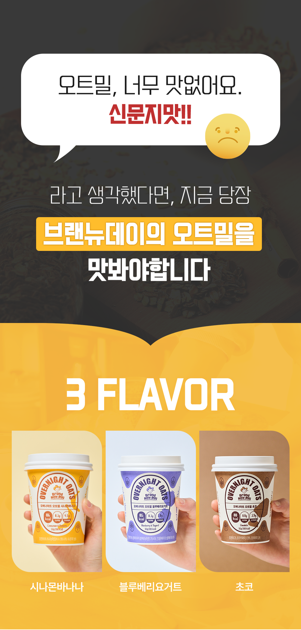 맛으로 승부하겠습니다! 그동안 억지로 먹던 신문지맛 말고, 꾸덕하고 맛있는 오버나이트 오트밀