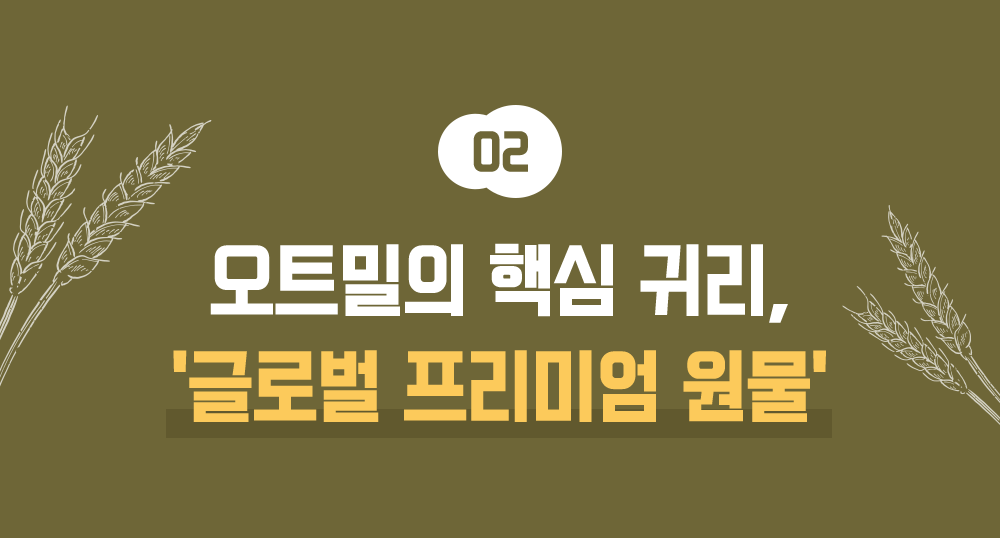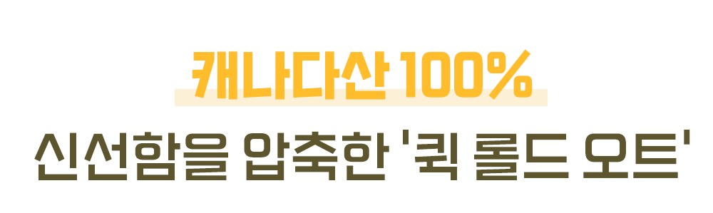 캐나다산은 다른 산지에 비해 알이 굵고 단단하며, 단백질과 베타글루칸 함량이 우수합니다. 씹을수록 깊어지는 고소한 풍미는 캐나다산만의 특징입니다. 뿐만 아니라 캐나다는 전 세계에서 가장 까다로운 곡물 품질 관리 시스템을 운영합니다. 재배부터 수확까지 철저하게 관리된 '믿을 수 있는 귀리'입니다.