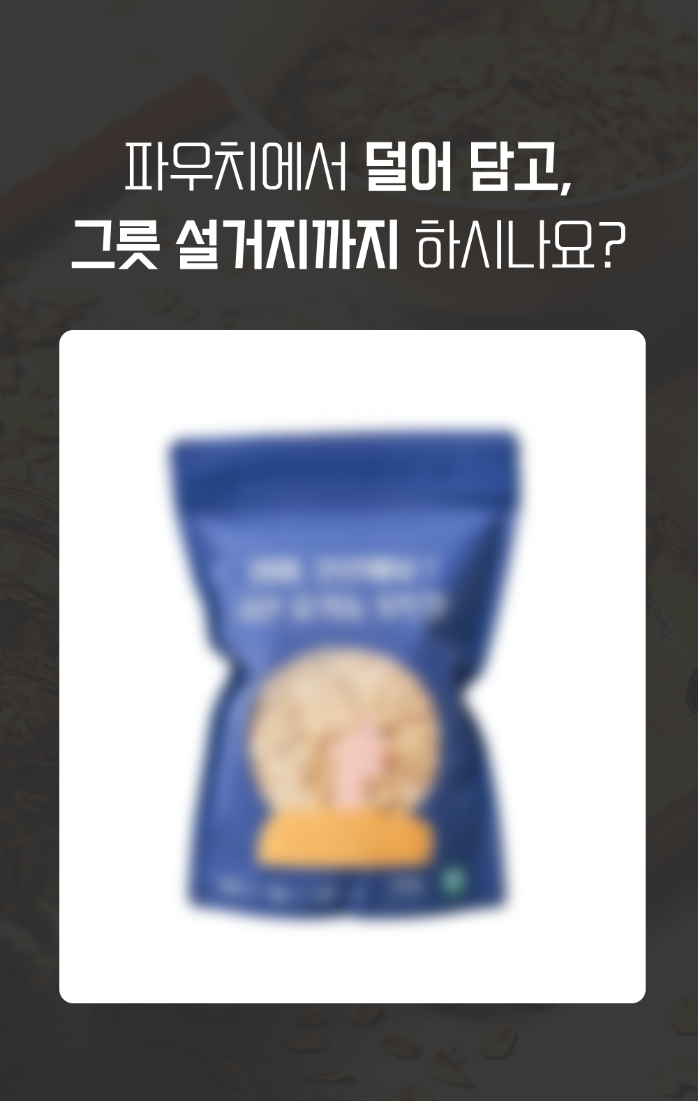 대용량 파우치를 사서, 그릇을 꺼내고, 숟가락을 찾고, 저울로 그램수를 재고...식탁 위엔 가루가 날리고, 다 먹고 나면 눌어붙은 그릇 설거지까지.건강해지려다 스트레스만 받지 않으셨나요?