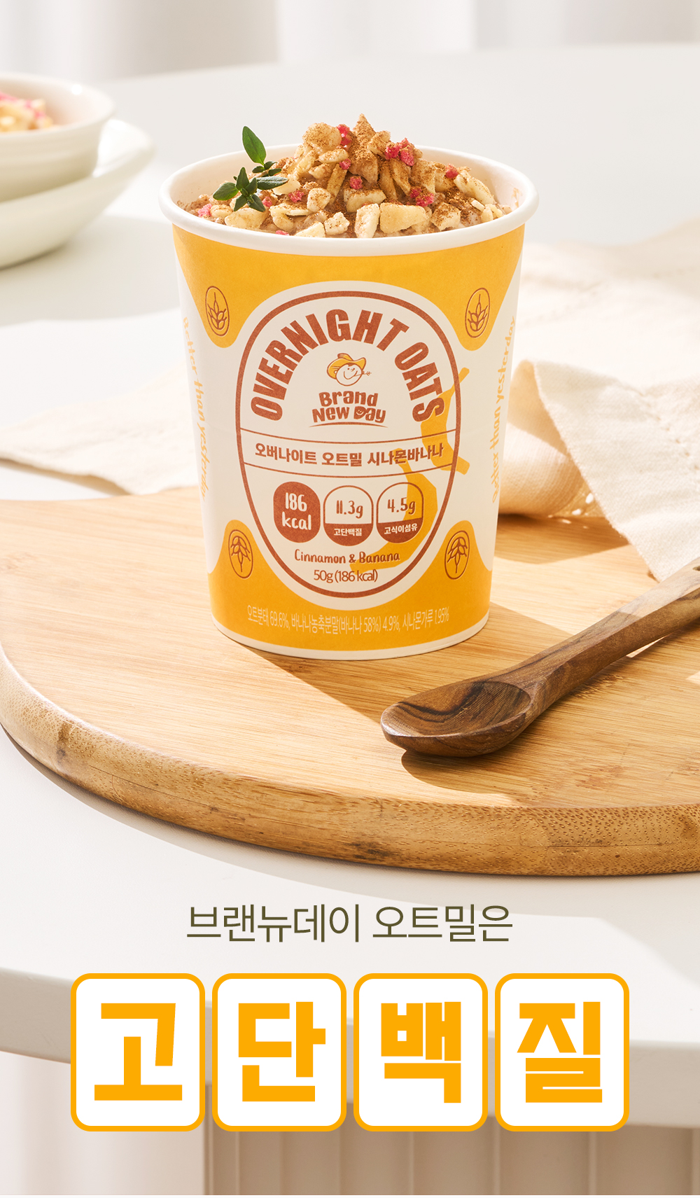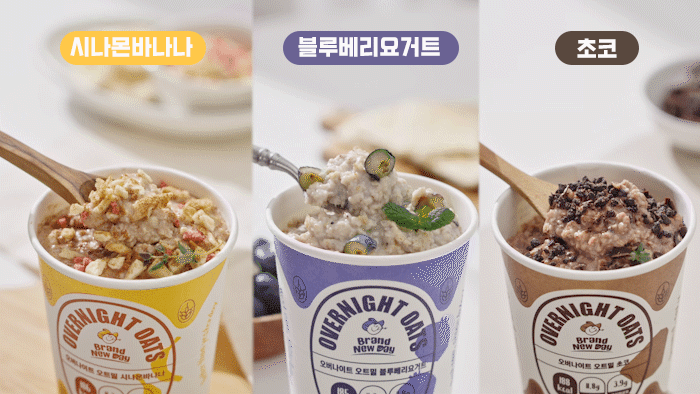 브랜뉴데이는 '새로운시작' '새로운날' 을 의미합니다 . 그동안 미루어왔던 건강한 라이프를 브랜뉴데이 오버나이트 오트밀과 함께 시작해 보세요!! 바쁜 현대인들에게 최적화된 안성맞춤 오버나이트 오트밀