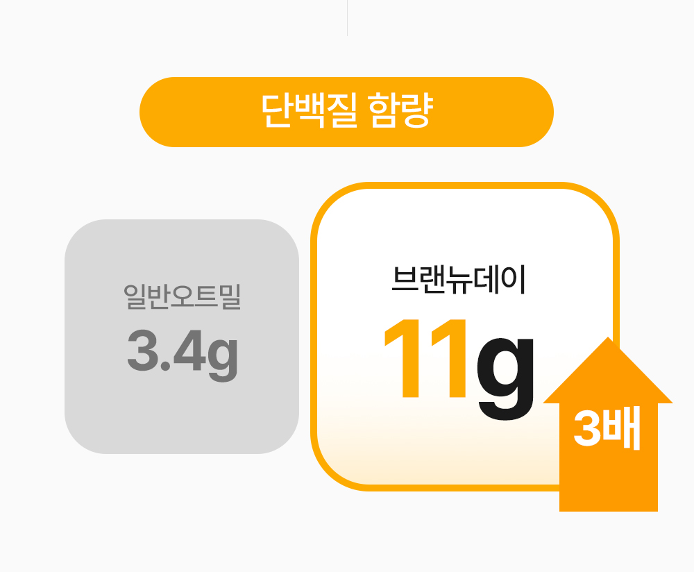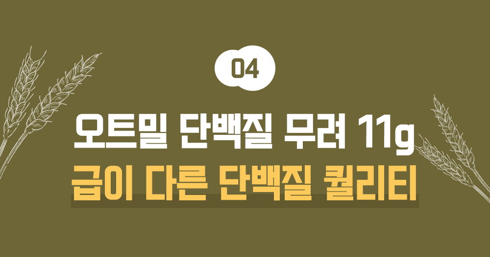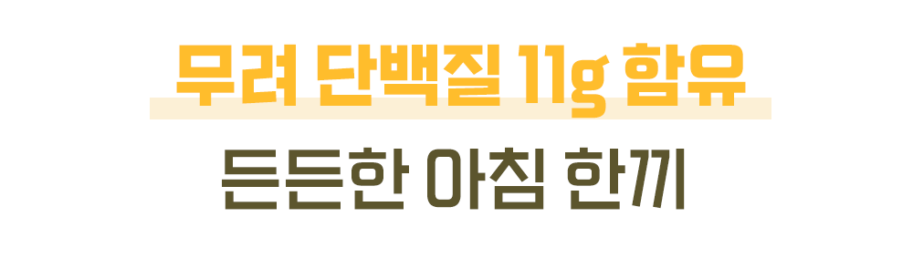 일반적인 오트밀 한 끼의 단백질은 고작 3.4g 남짓. 계란 하나도 안 되는 양입니다.우리는 동물성 단백질과 식물성 단백질을 꽉 채워 한 컵에 11g을 담았습니다. 3배 더 많은 단백질함량으로 일반 오트밀 대비 압도적인 함량으로 근손실 걱정 없이 든든합니다.