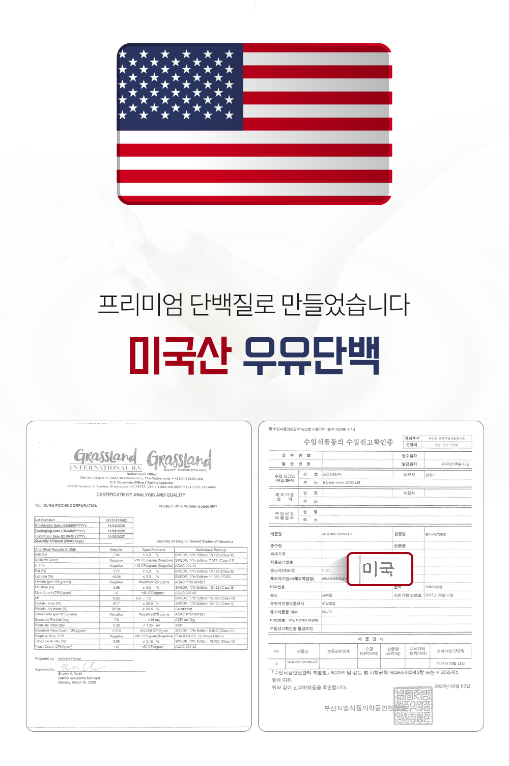 우유의 본고장 미국에서 온 분리우유단백질(MPI)을 베이스로 사용했습니다. 일반적인 우유 단백질과는 차원이 다릅니다.