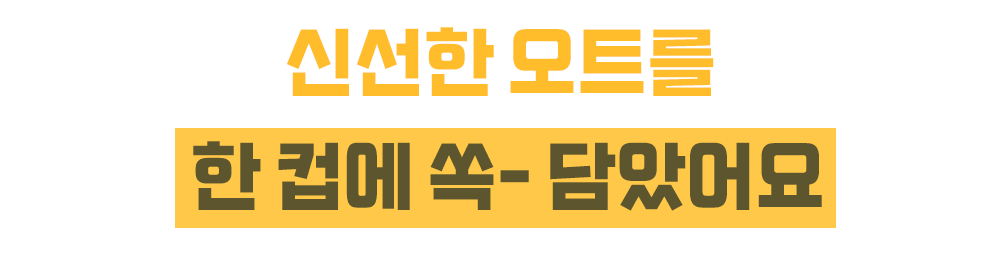 부드럽게 넘어가는 꾸~덕한 식감과 은은하게 씹히는 귀리 식감을 모두 살려, 맛있는 오트밀입니다.