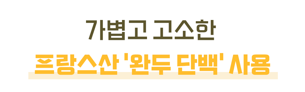 시중의 저가 제품들은 원가를 낮추기 위해 중국산 대두단백 등을 섞는 경우가 많습니다. 하지만 브랜뉴데이는 미식의 본고장 프랑스산 프리미엄 완두 단백을 사용합니다.