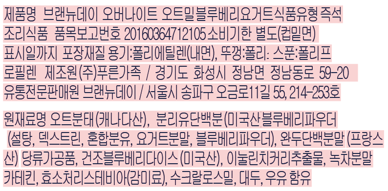 "상큼함이 톡톡!" 텁텁한 곡물 맛을 싫어하신다면 강력 추천. 상큼 달달한 블루베리와 부드러운 요거트 맛이 아침을 상쾌하게 깨워줍니다.
