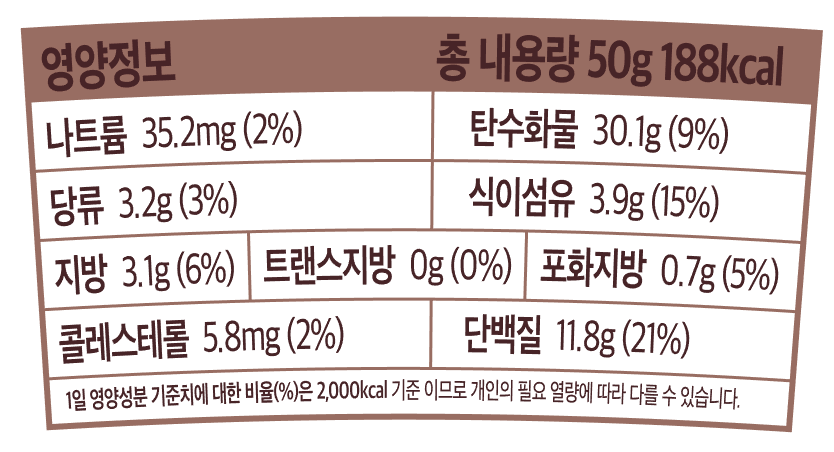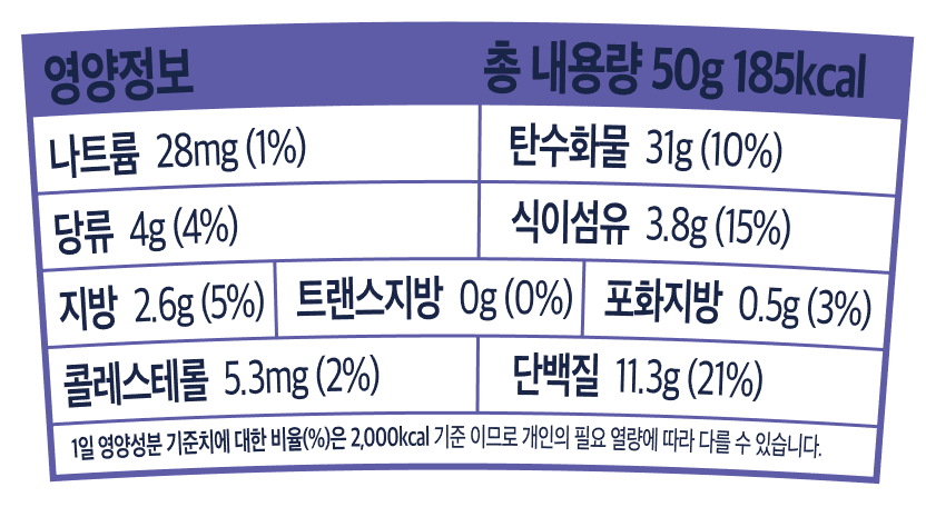단 188kcal, 밥 한공기보다도 훨씬 낮은 칼로리로 든든하게 챙기세요.