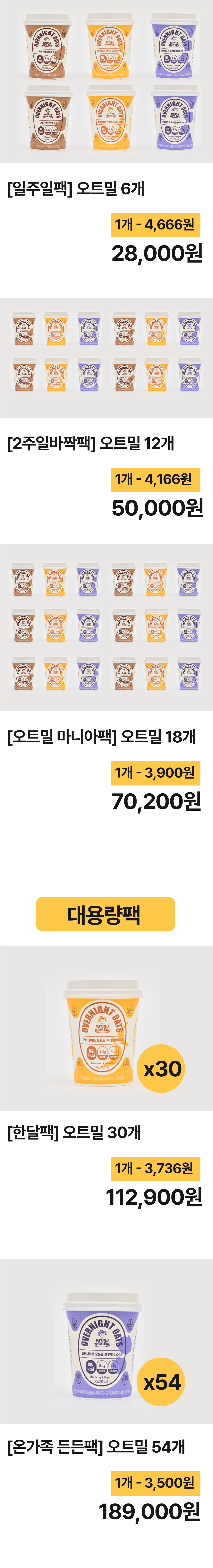 오트밀 시장에서 흔히 볼 수 없는, 하지만 누구나 좋아하는 '최애 조합'만 모았습니다.