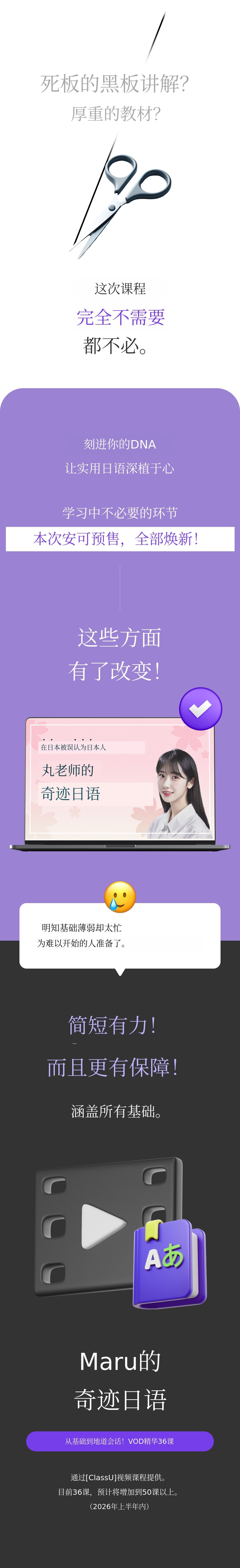 在这方面,只需听就能完成的Maru极其实用主义日语内容对大家来说一定非常特别。