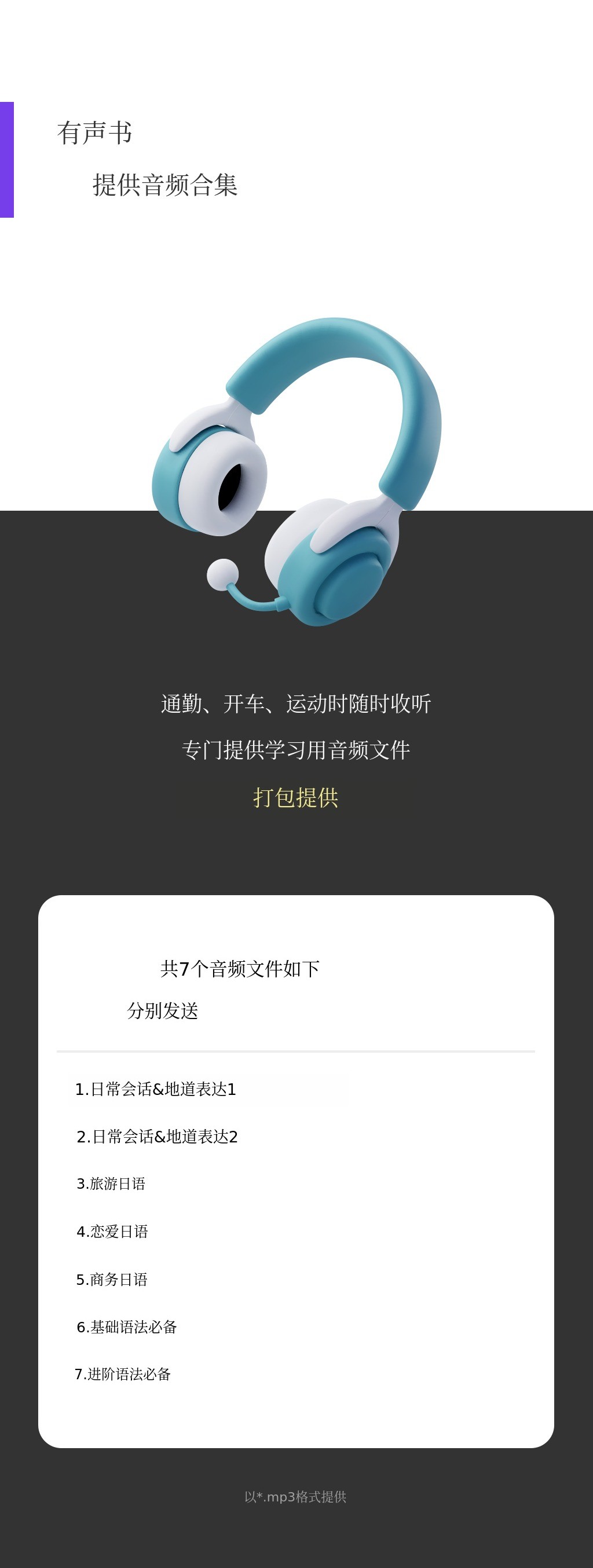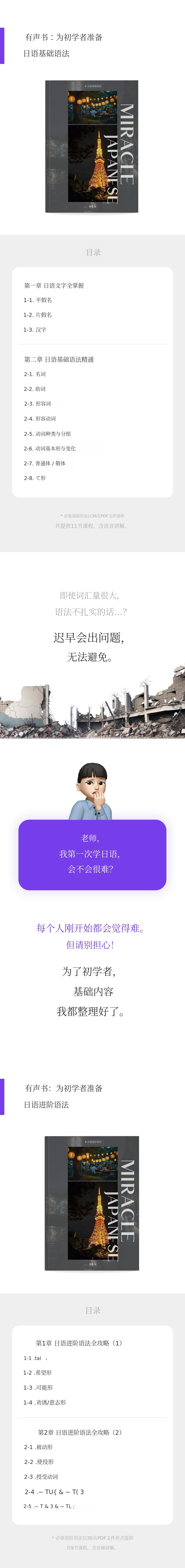 如果还有人没有记住字母或掌握基础语法,可以通过有声书C、D(为初学者准备的日语基础语法)从基础到中级语法进行预习和复习。
