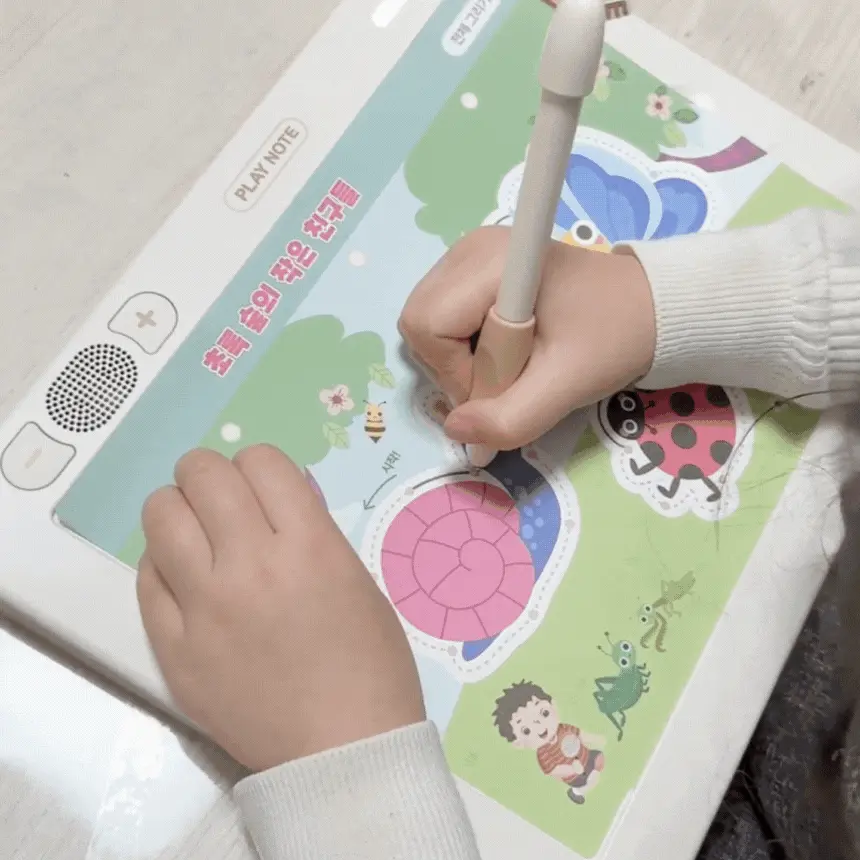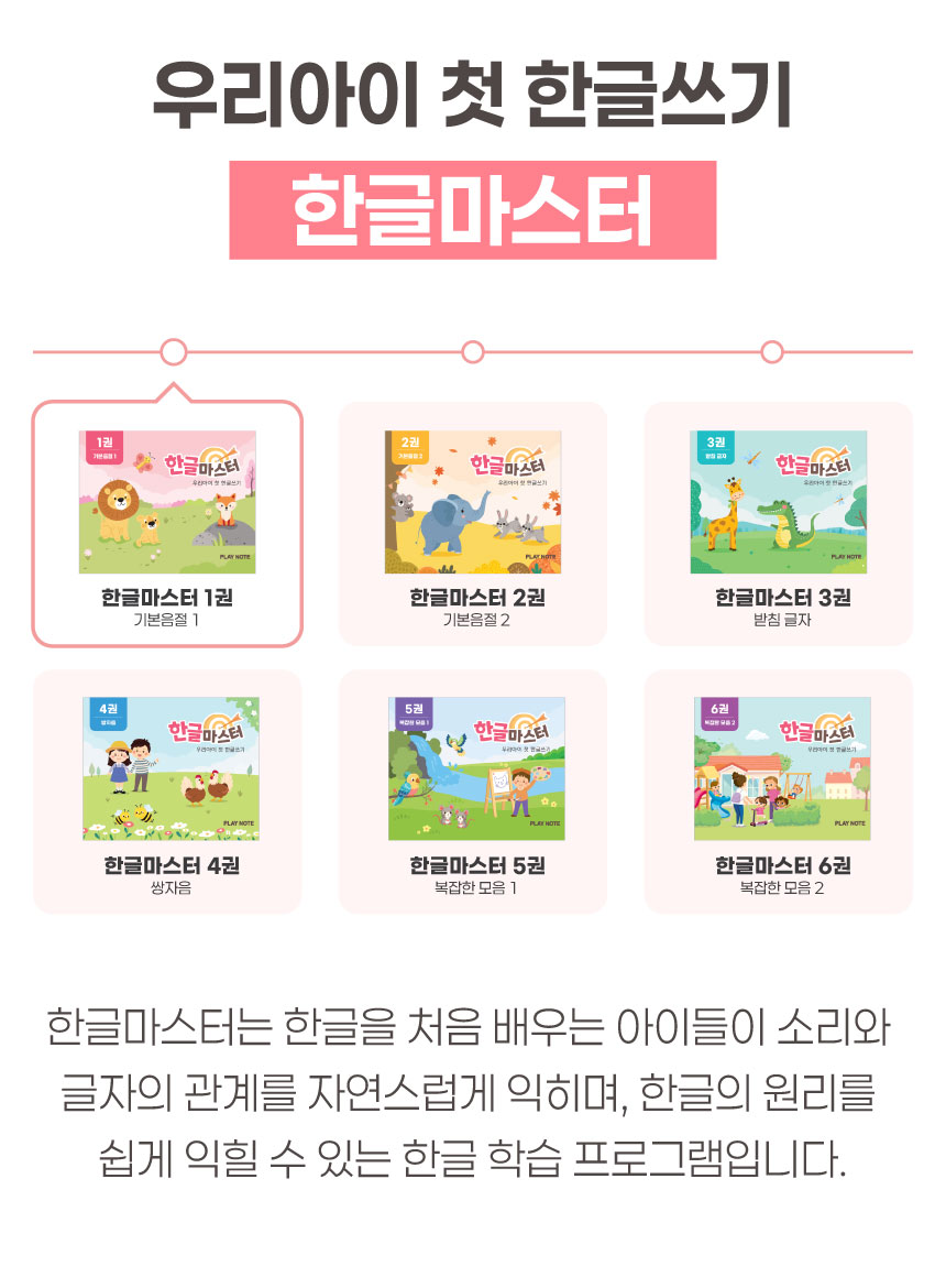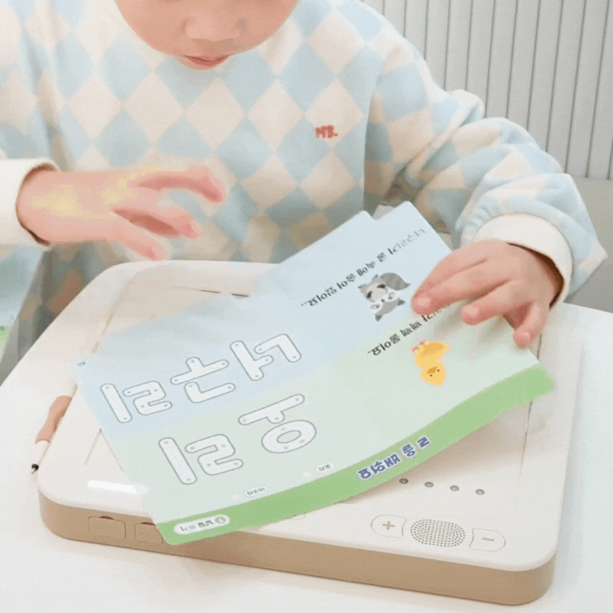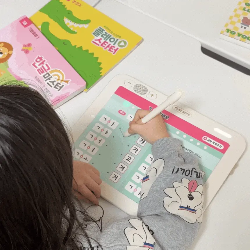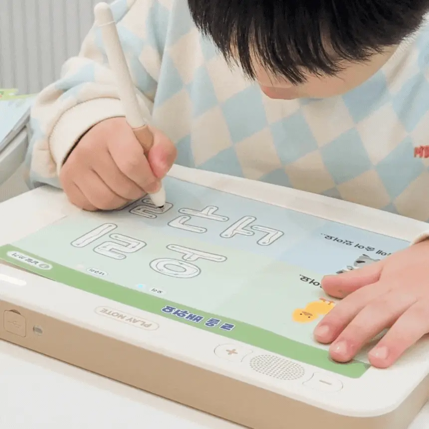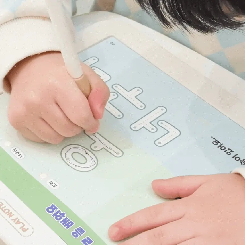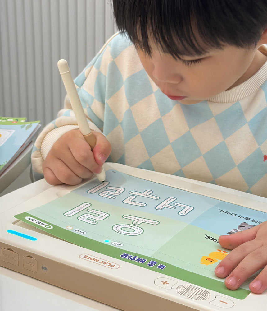 1. 📚 会说话的韩文学习册 - 写时即读的500页丰富课程 2. 🧒 自主学习支持 - 让孩子如同有1:1老师般学习 3. 🎁 限量套装提供 - 包含PLAY NOTE主机和9册练习册