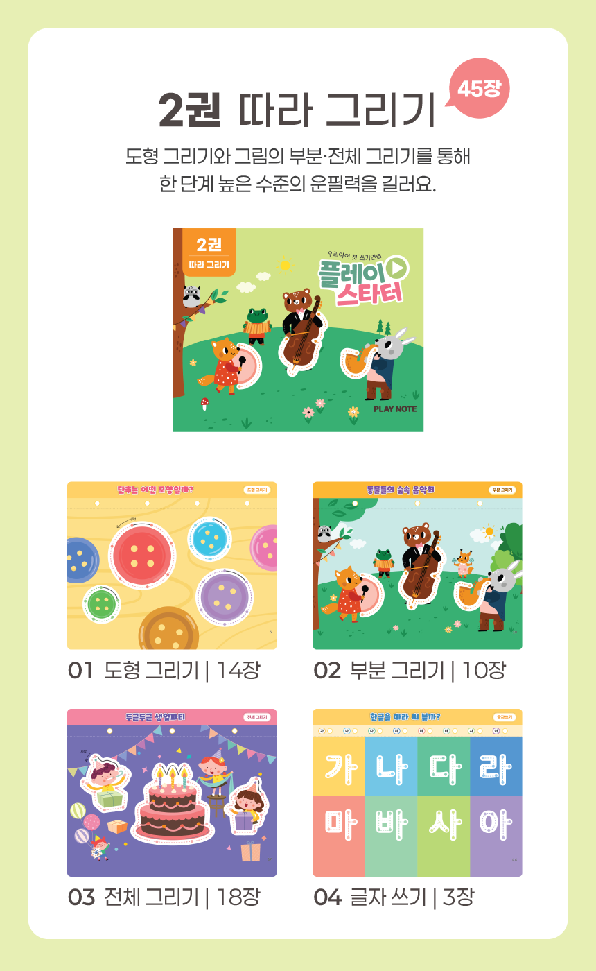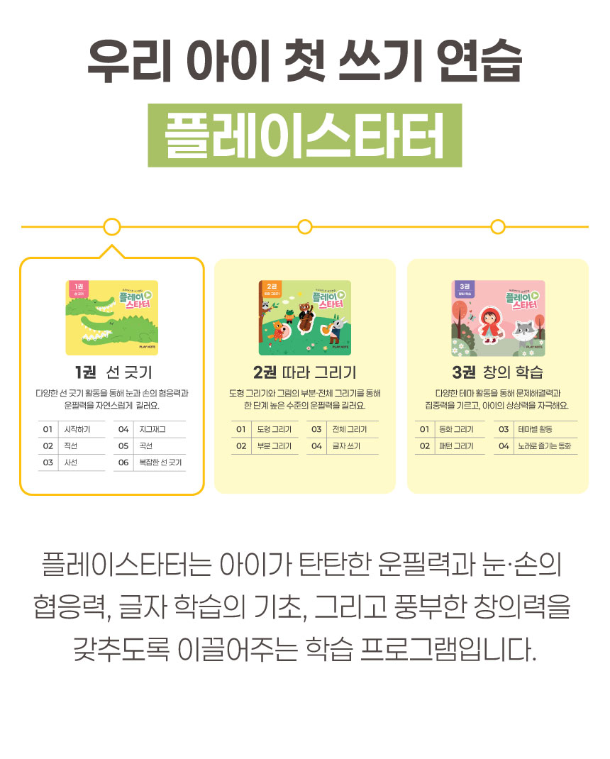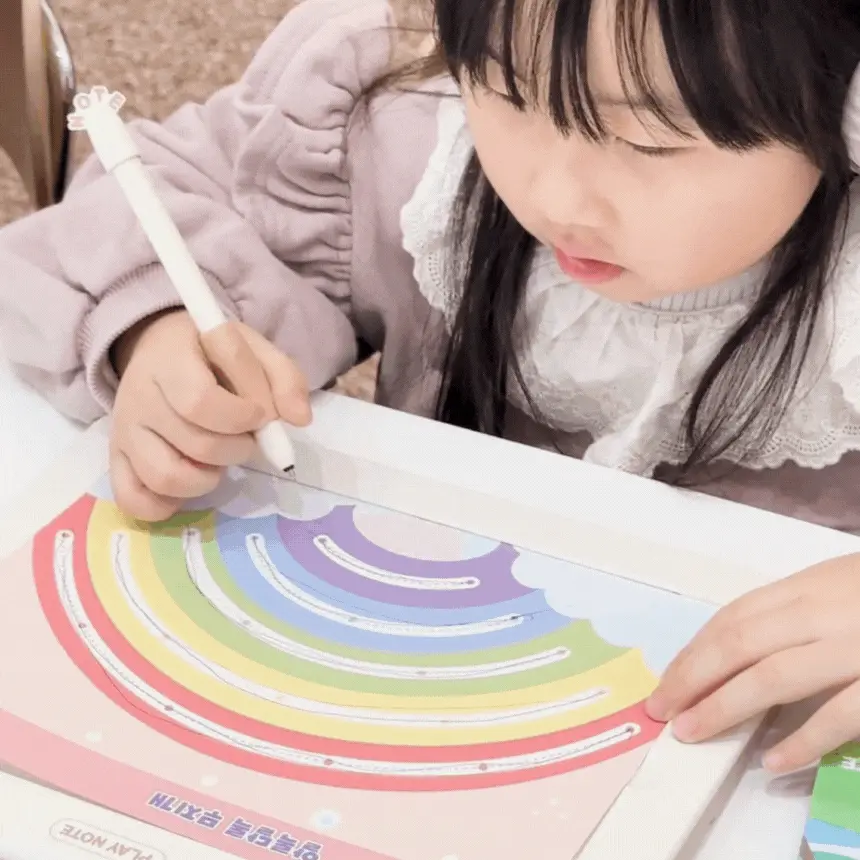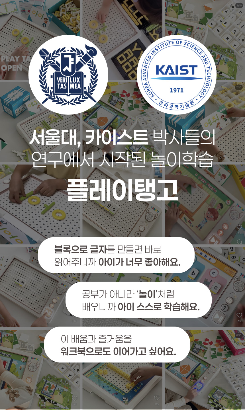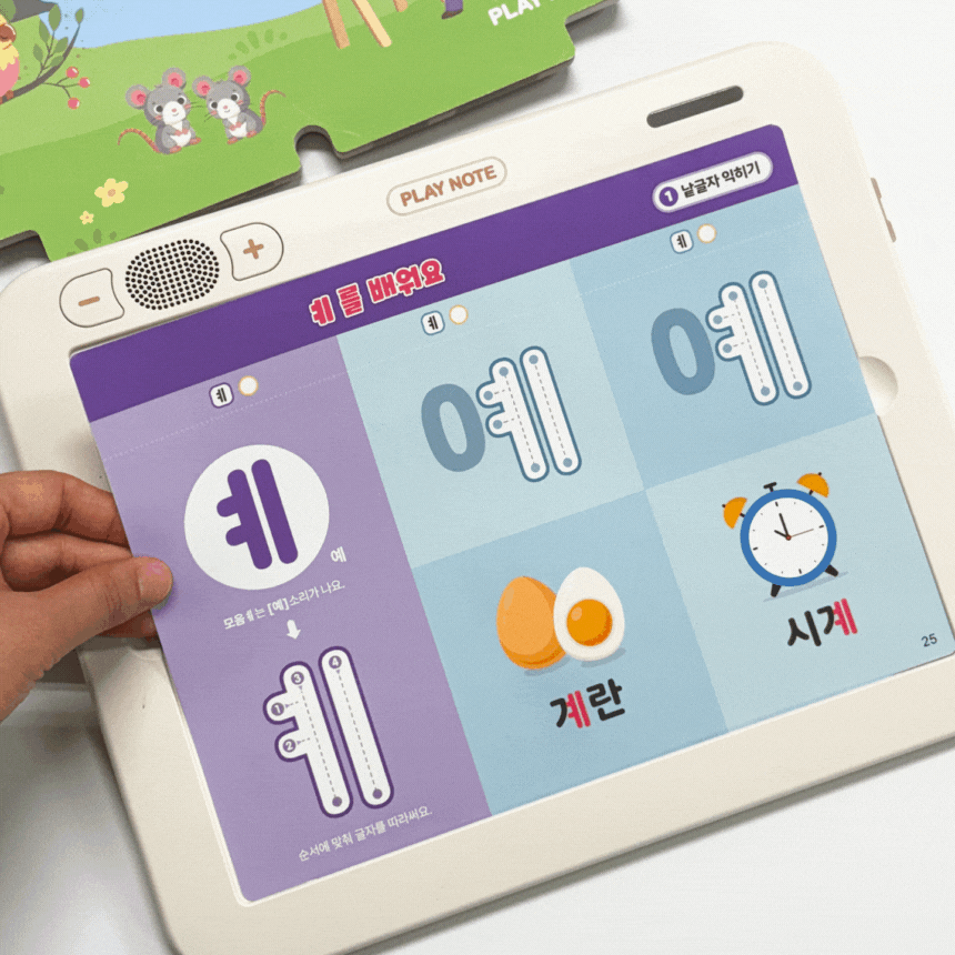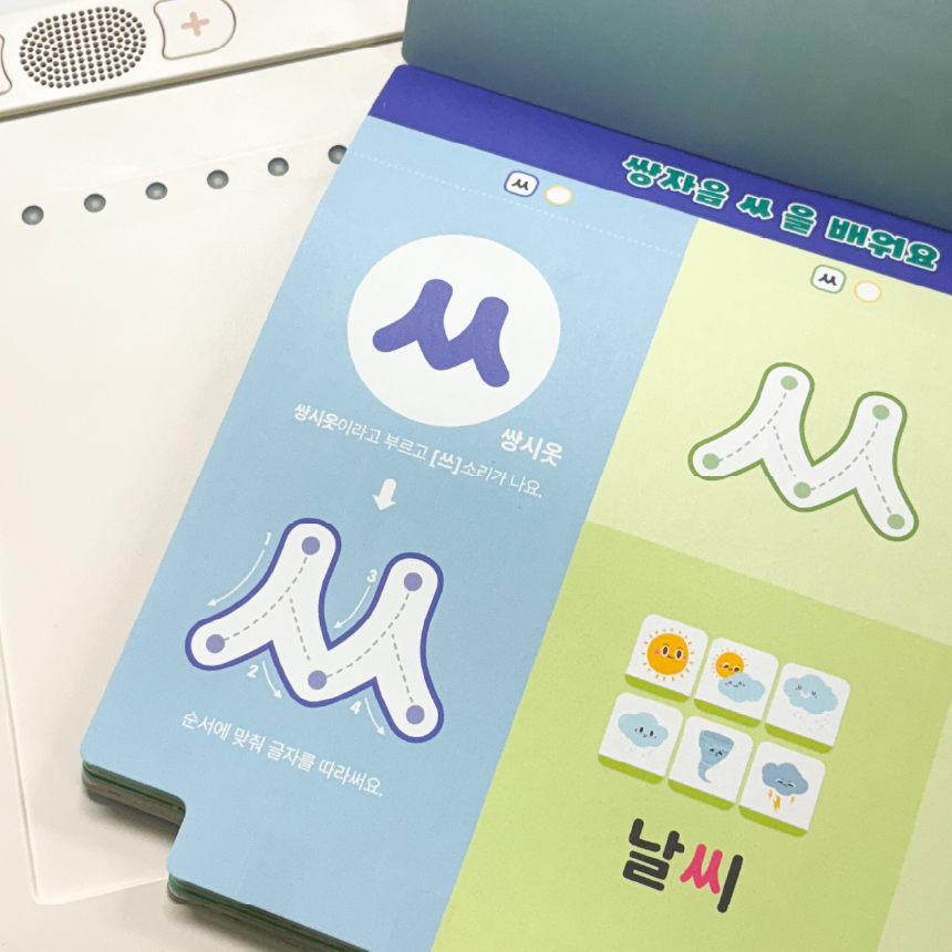 1. 📚 会说话的韩文学习册 - 写时即读的500页丰富课程 2. 🧒 自主学习支持 - 让孩子如同有1:1老师般学习 3. 🎁 限量套装提供 - 包含PLAY NOTE主机和9册练习册