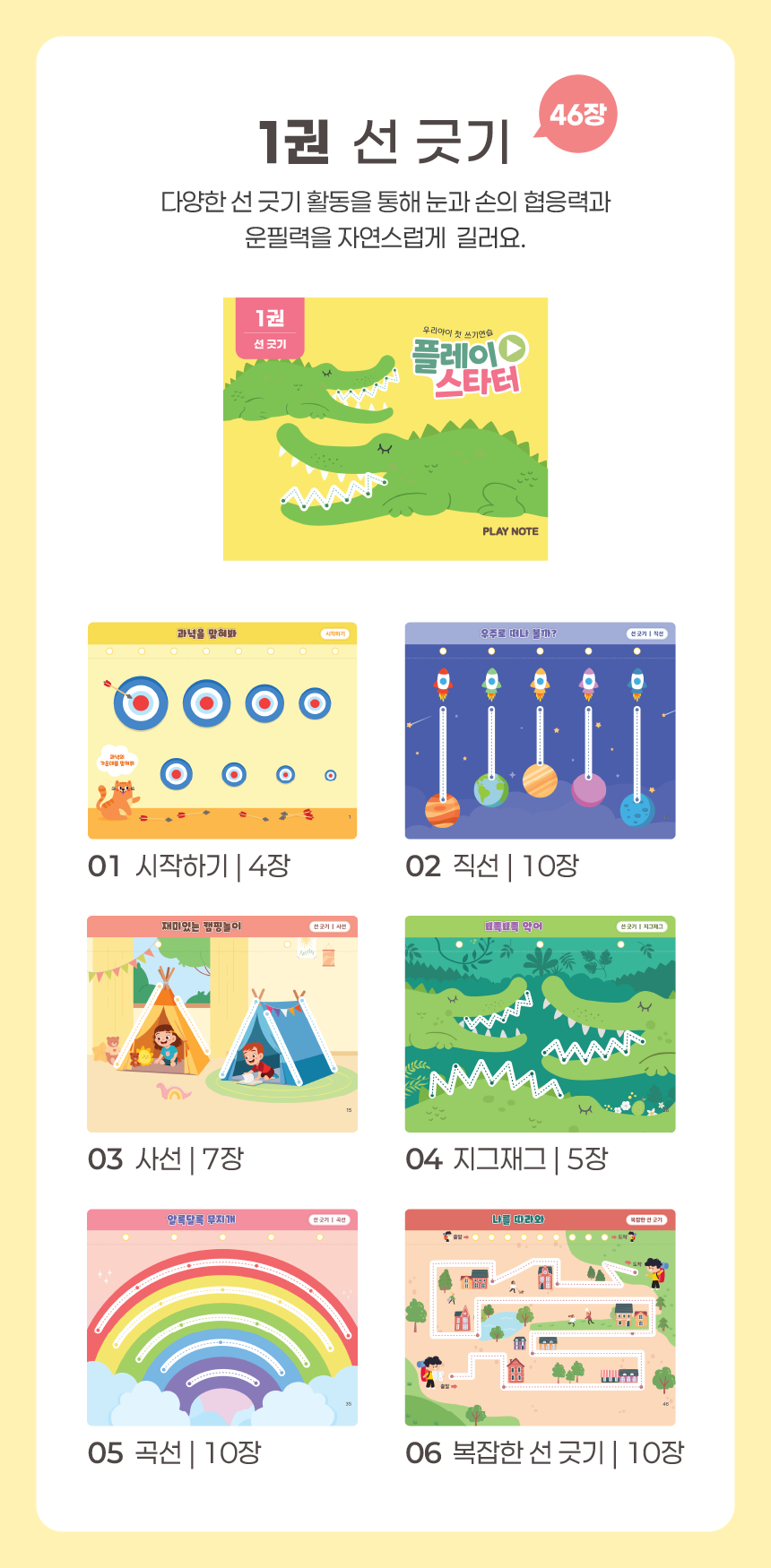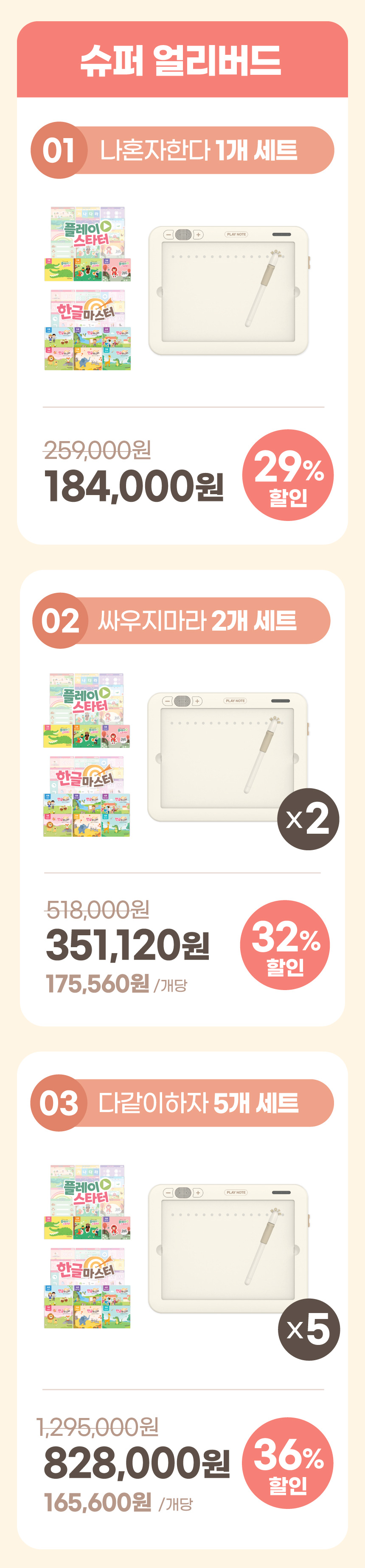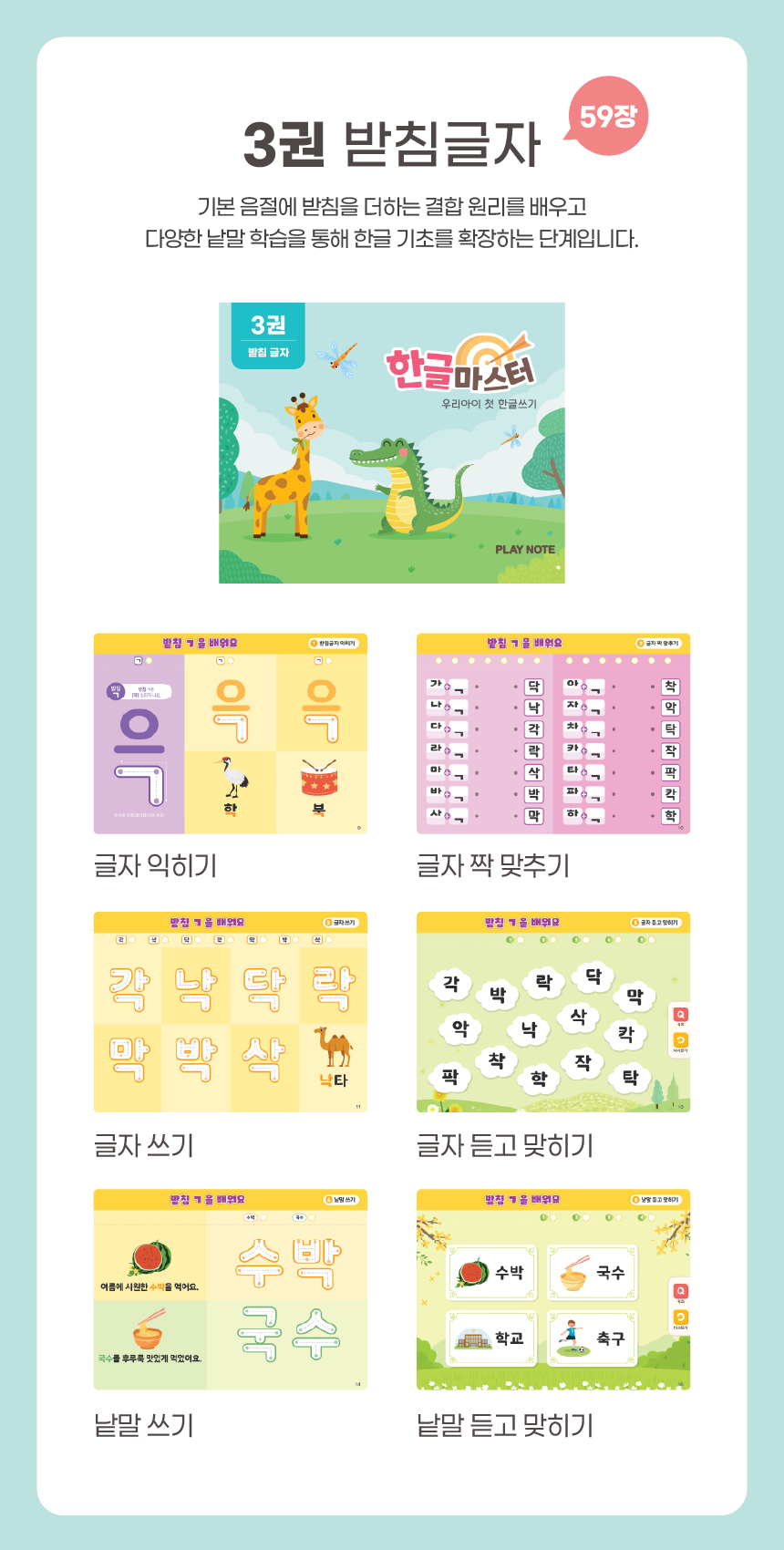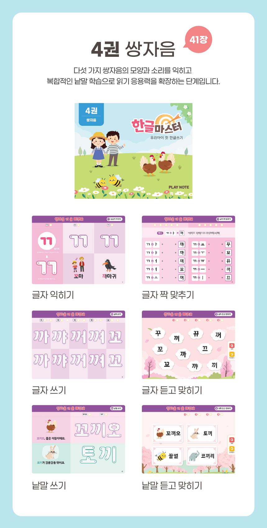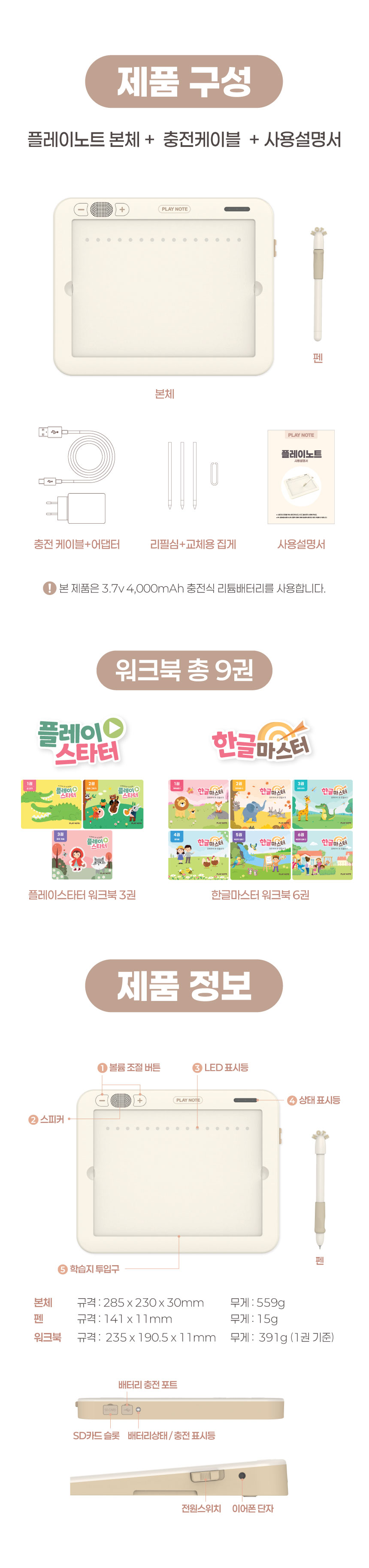 1. 📚 会说话的韩文学习册 - 写时即读的500页丰富课程 2. 🧒 自主学习支持 - 让孩子如同有1:1老师般学习 3. 🎁 限量套装提供 - 包含PLAY NOTE主机和9册练习册
