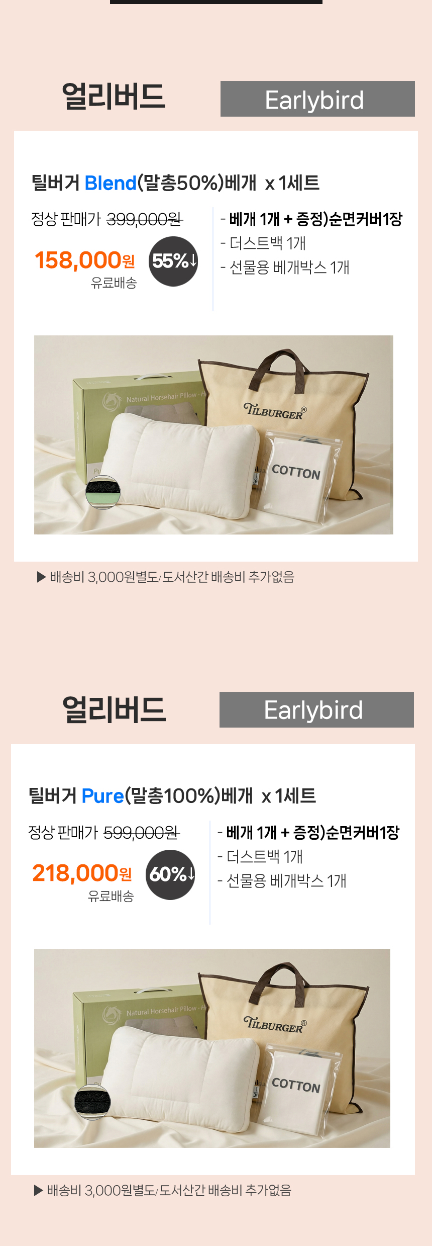 1. 🛏️ 100%天然马毛枕头 - 欧洲百年传统马毛,提供舒适睡眠 2. 💸 无百货公司加价 - 奢侈床垫材料10万韩元价提供 3. 🎁 限量折扣优惠 - 超级早鸟最高七折优惠,含礼盒