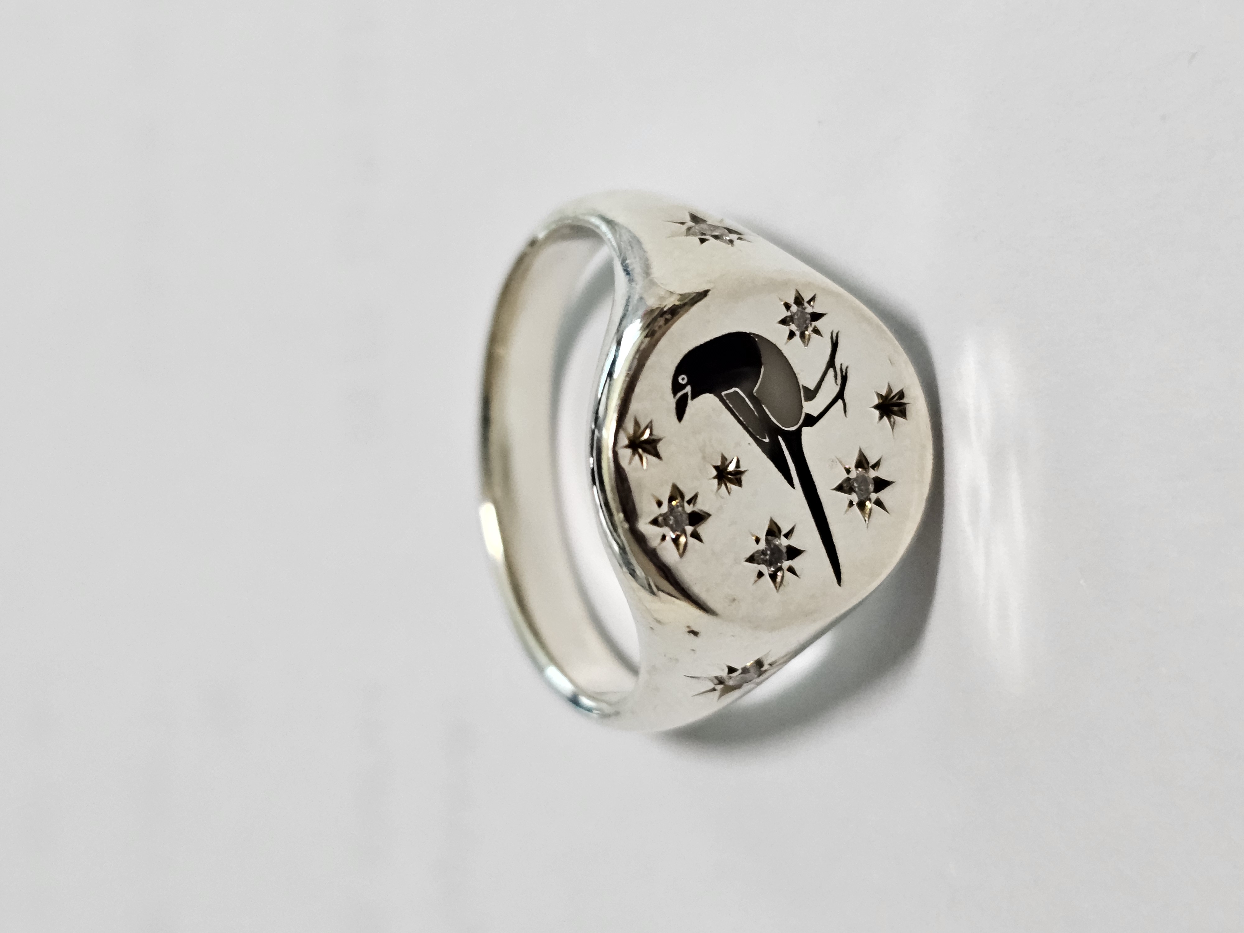 반지 중앙에는 까치의 실루엣을 담았습니다.