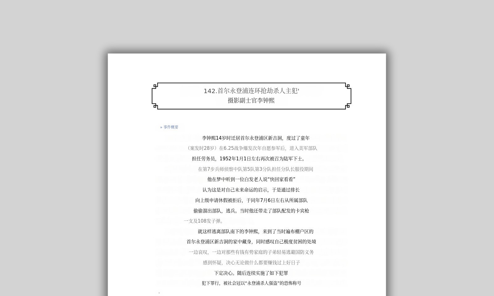 - 1952年脱逃副士官在首尔永登浦一带连环杀人