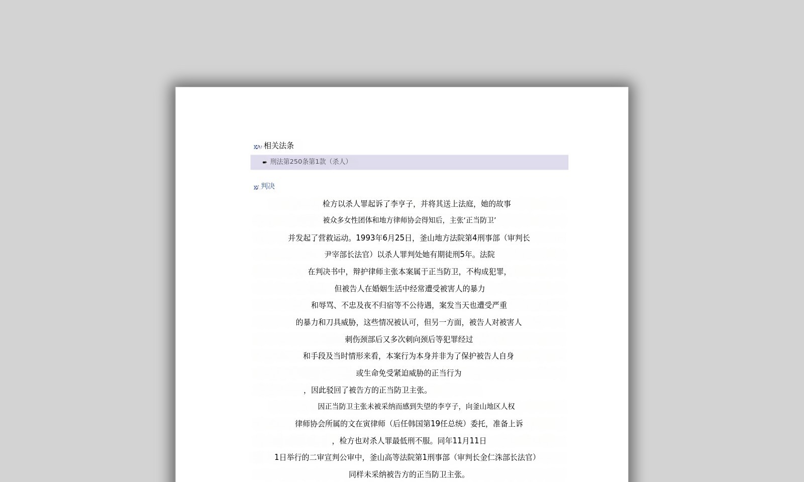 <大韩民国重案判例史料集>独有的魅力