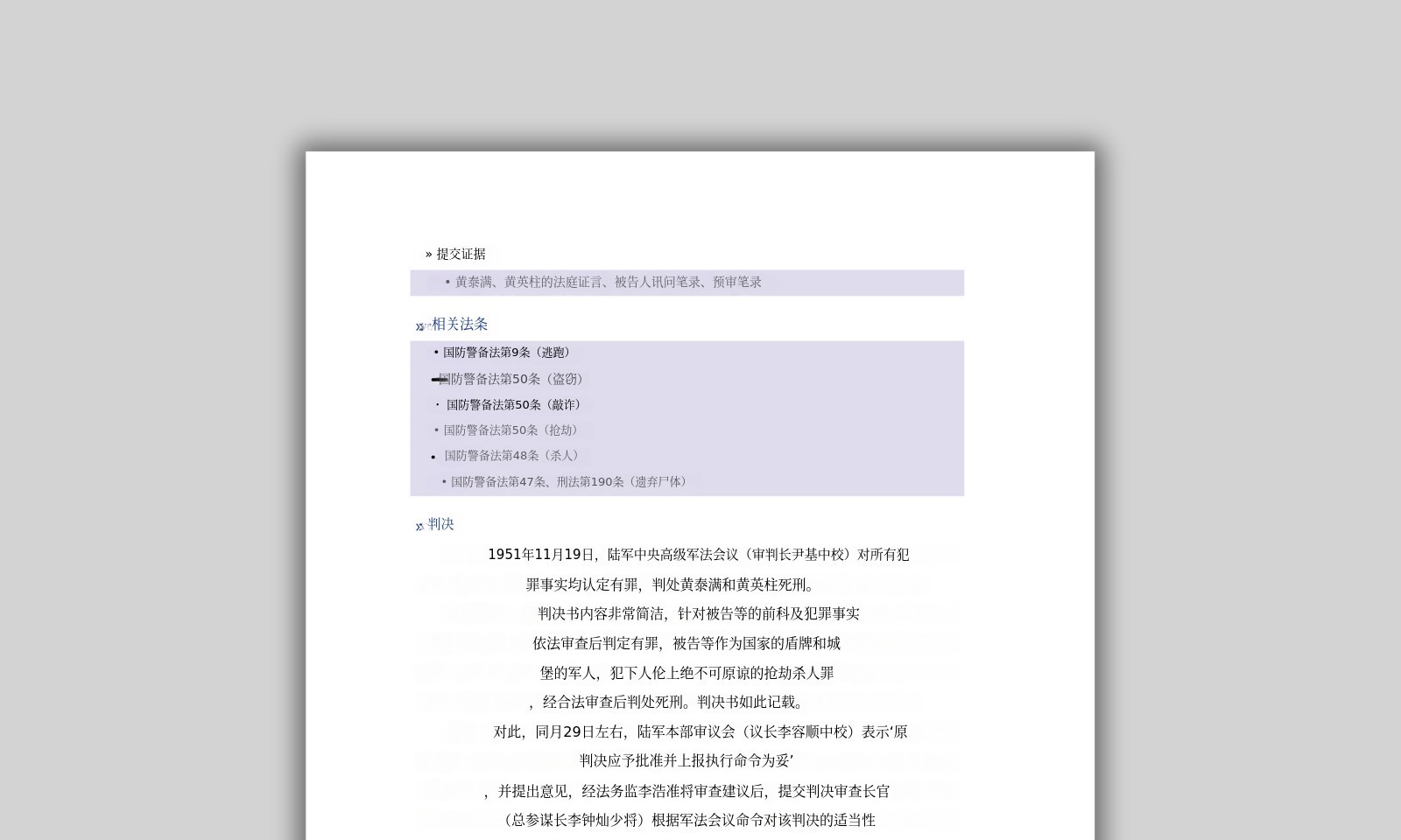 案件概要、提交证据、相关法条、判决、前科、案件之后