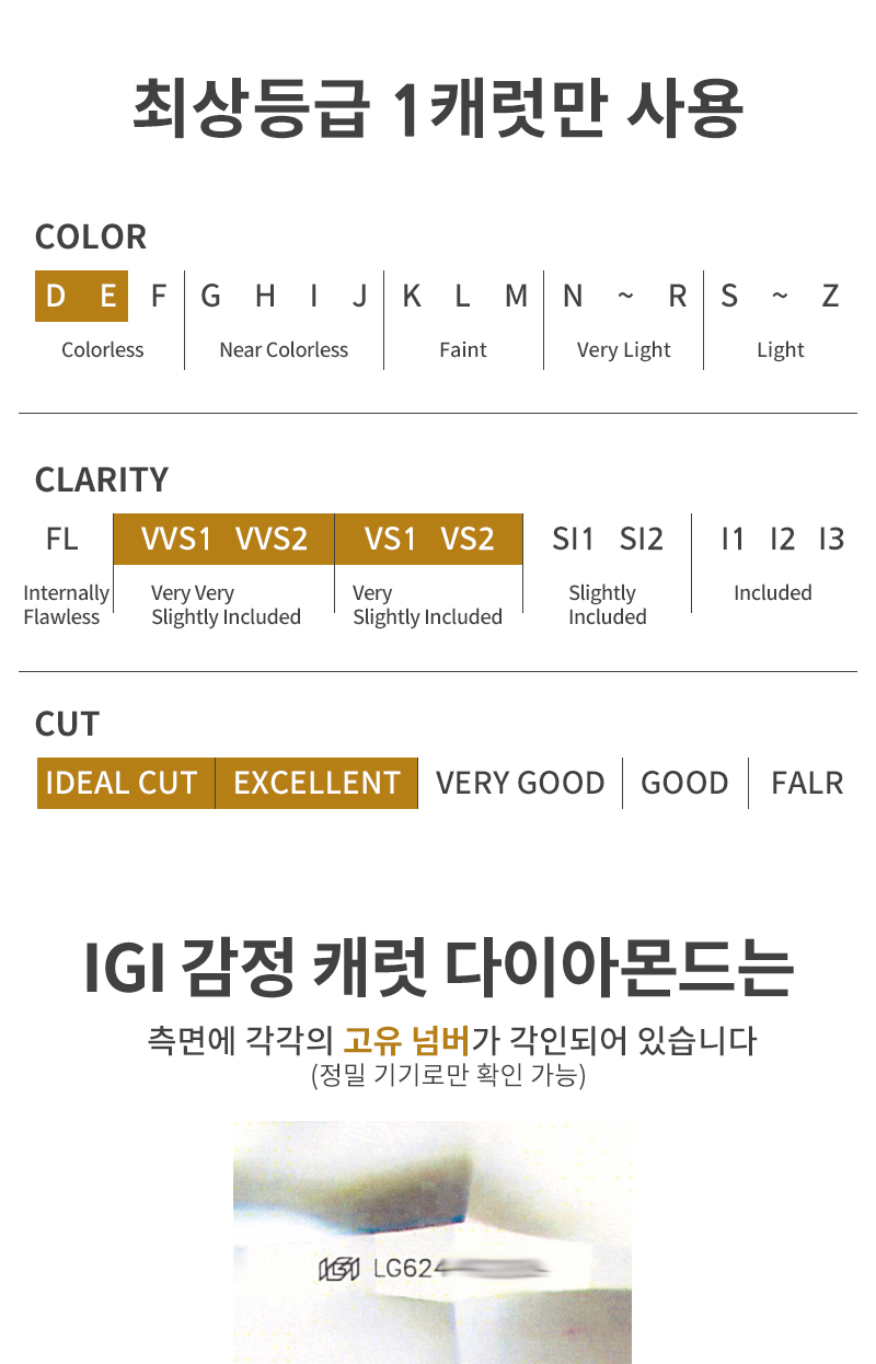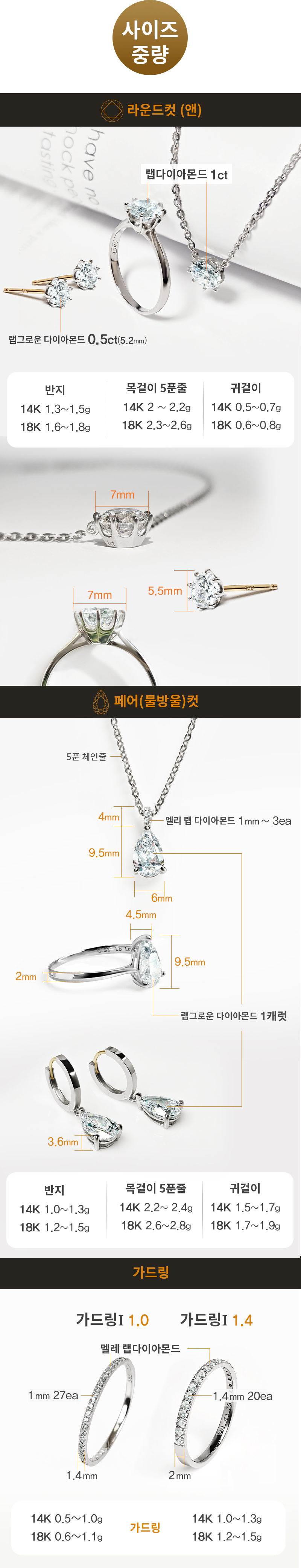 1) 표준 규격에 맞는 14K/18K골드 및 명시한 다이아몬드로만 제작합니다