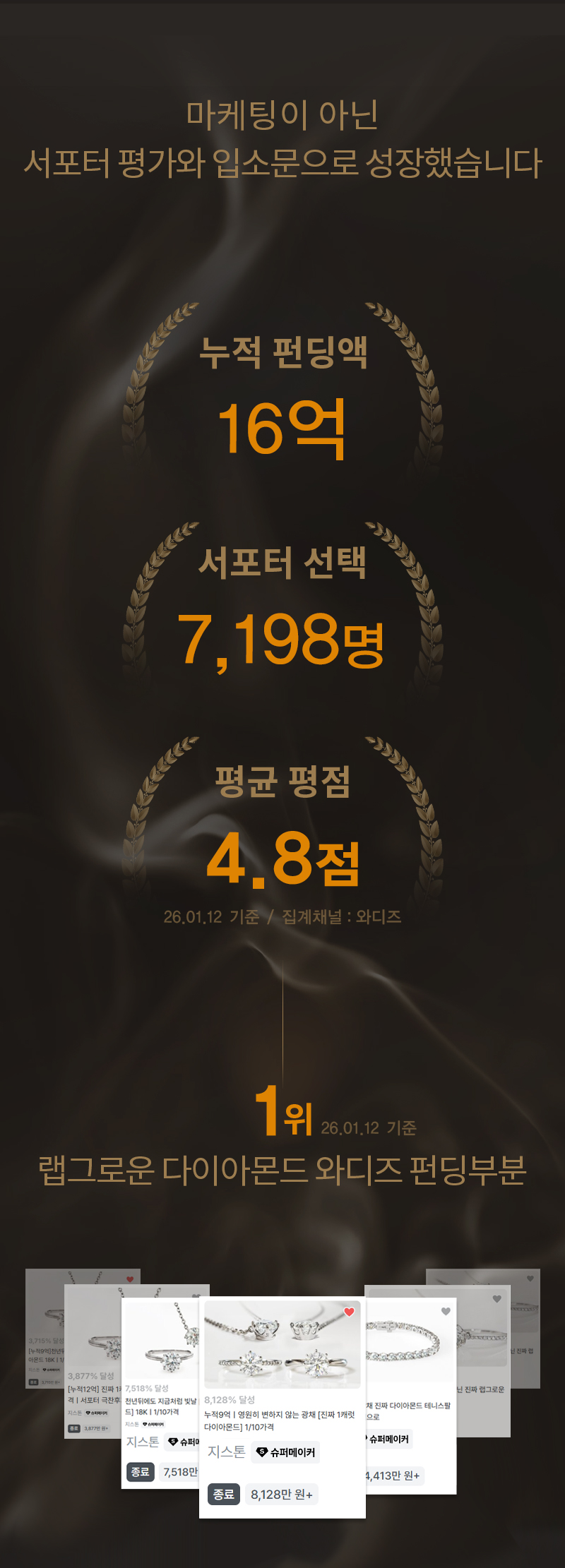 1캐럿 다이아몬드를 서포터들께 합리적으로 제공해드리고 싶어서 시작하게 되었습니다