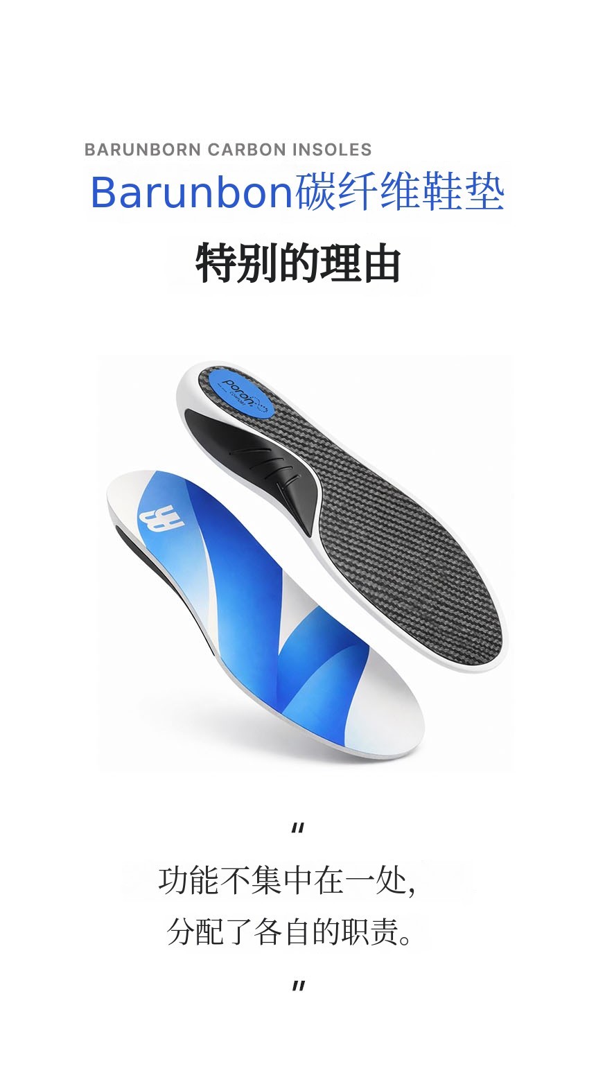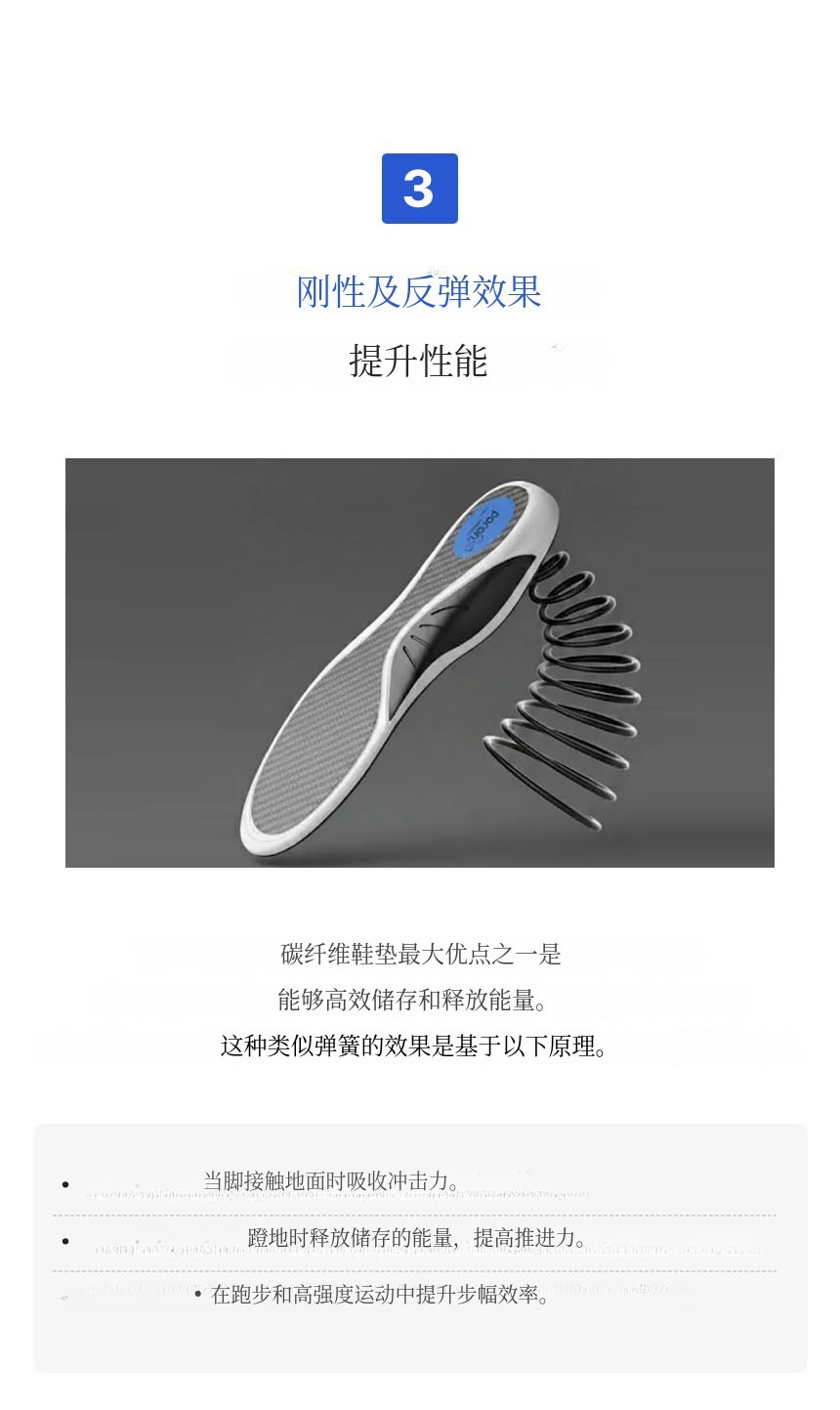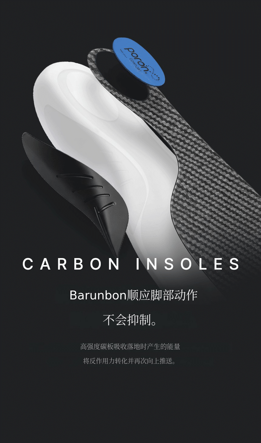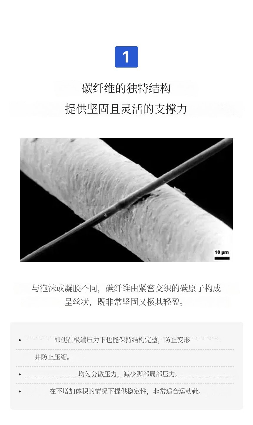 结合了碳纤维板 + TPU足弓支撑 + PORON后跟缓冲