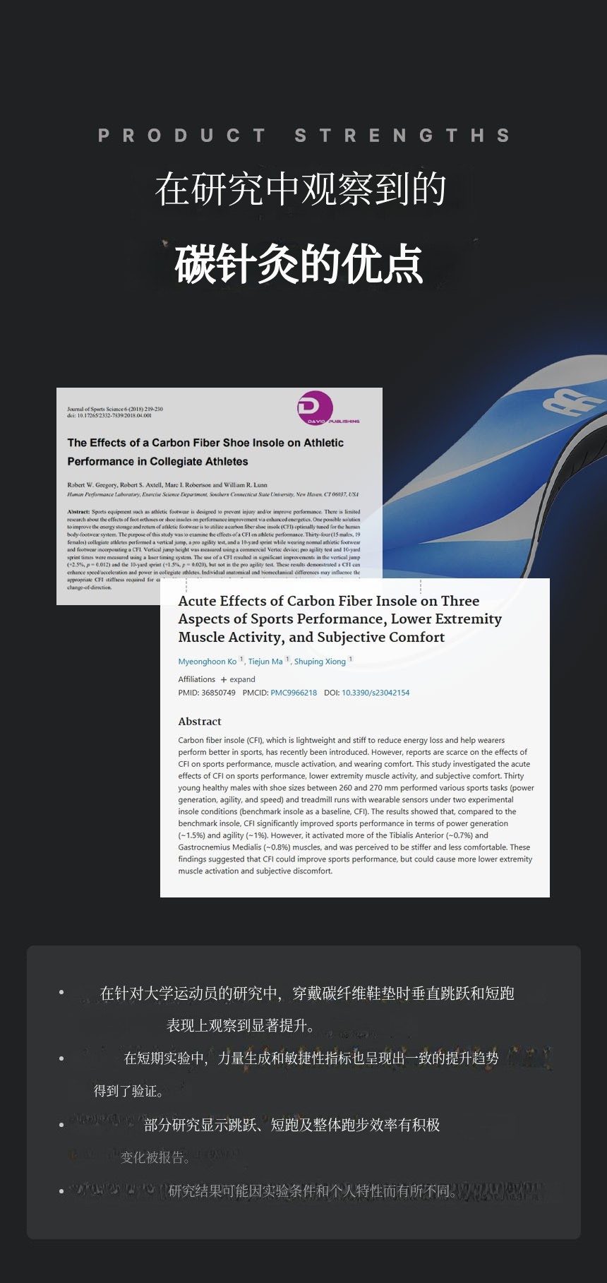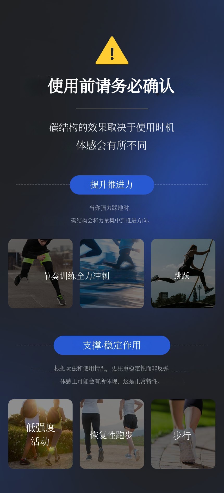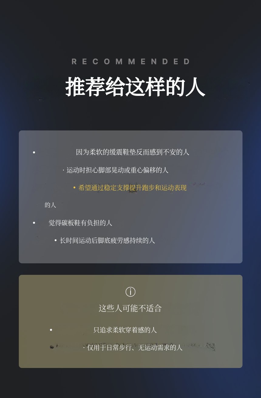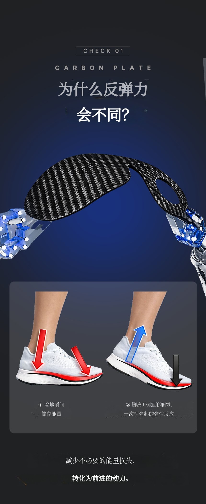 结合了碳纤维板 + TPU足弓支撑 + PORON后跟缓冲