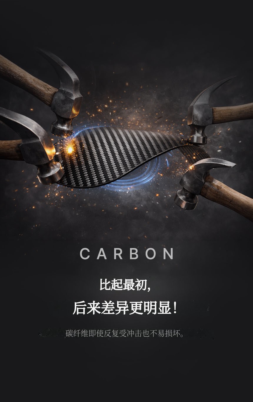 反复进行了碳纤维刚性、耐久性和反弹力的测试。