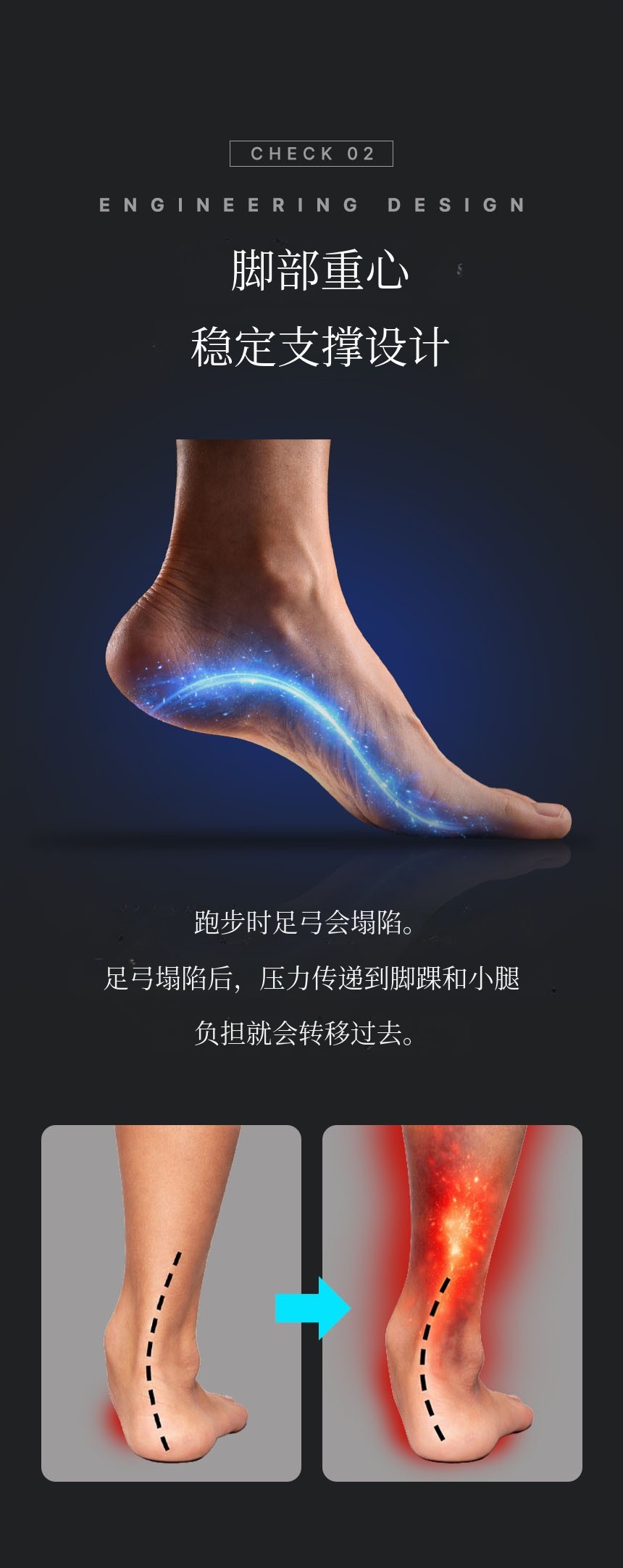 ✔ 脚跟直接承受冲击