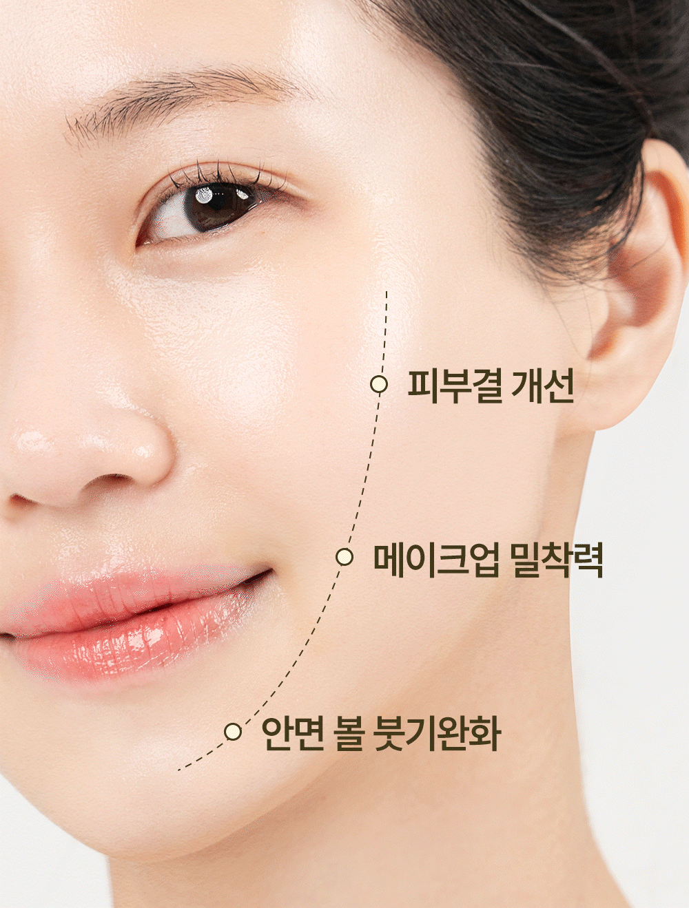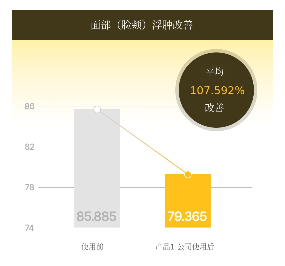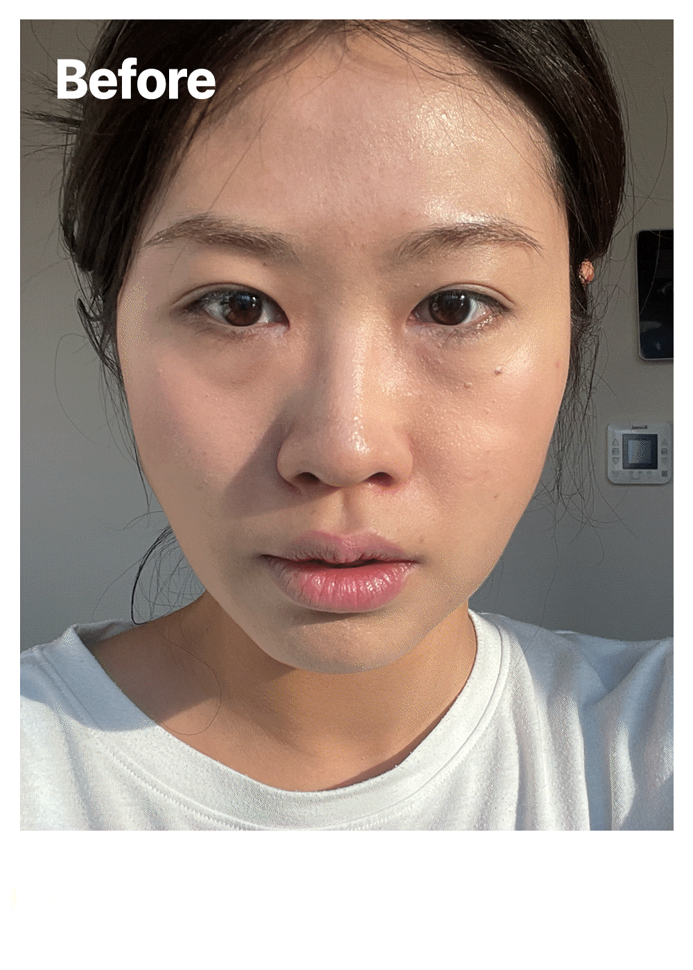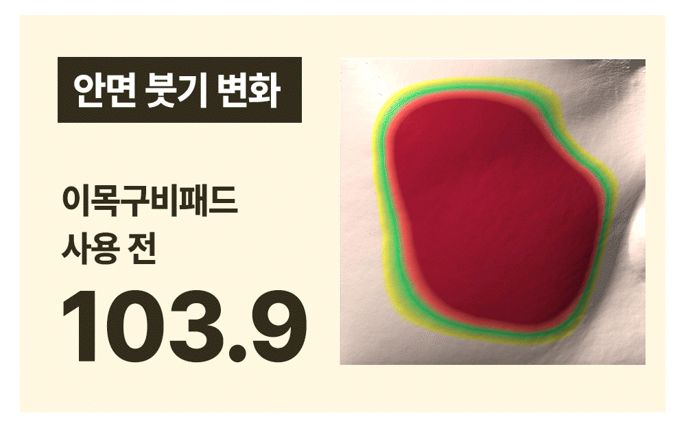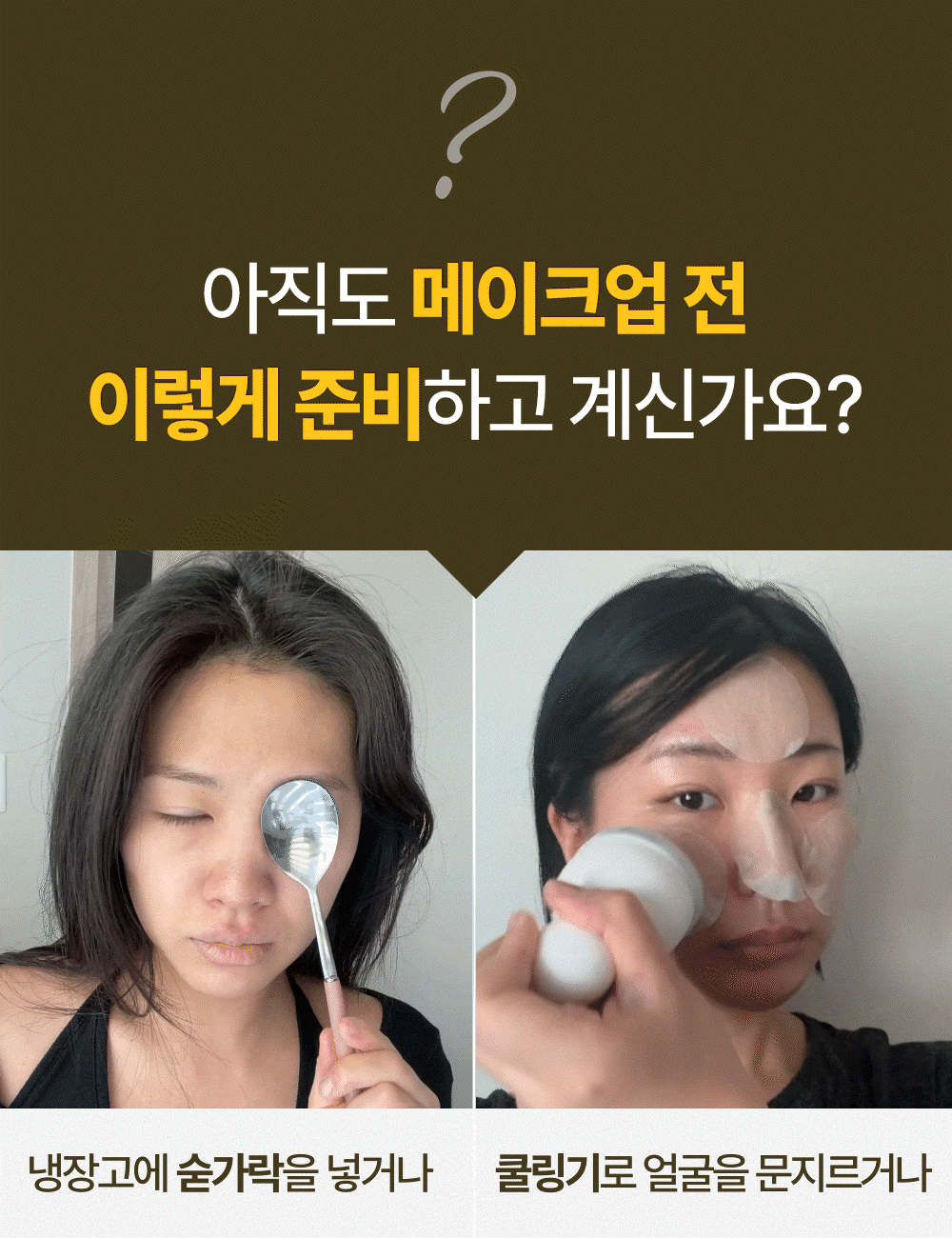 这是展示消肿和妆容贴合力提升4倍效果的前后对比照片。