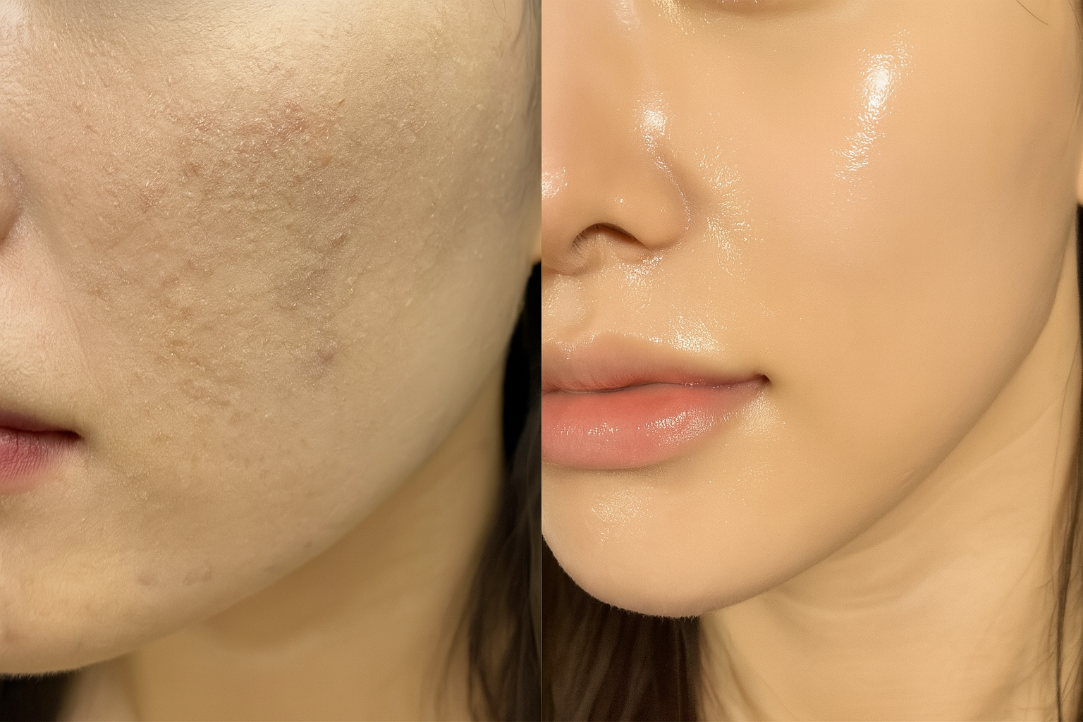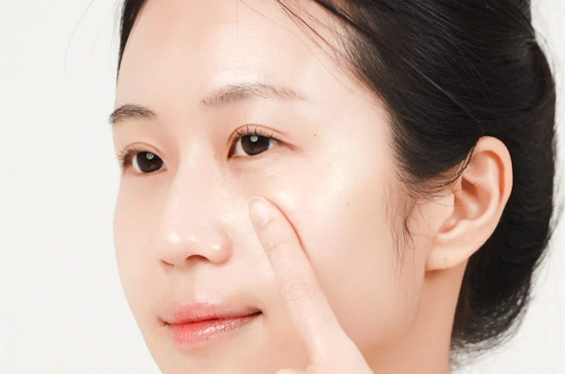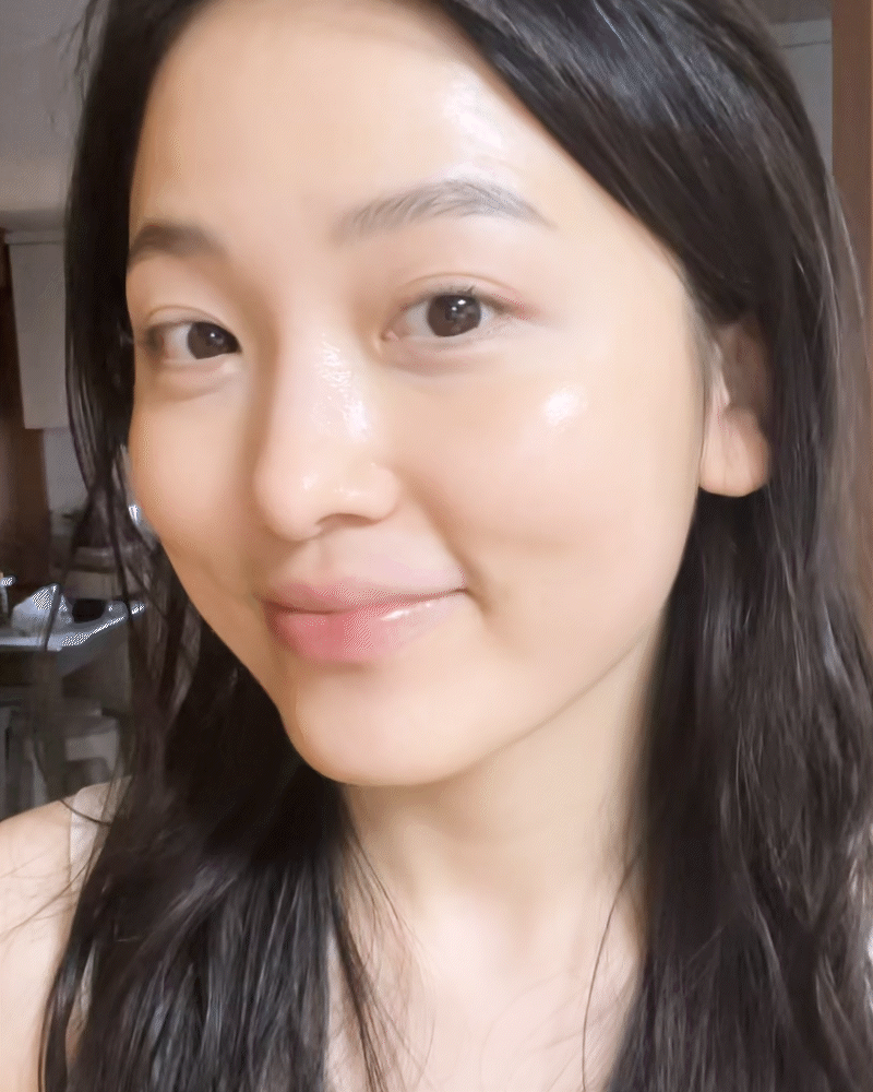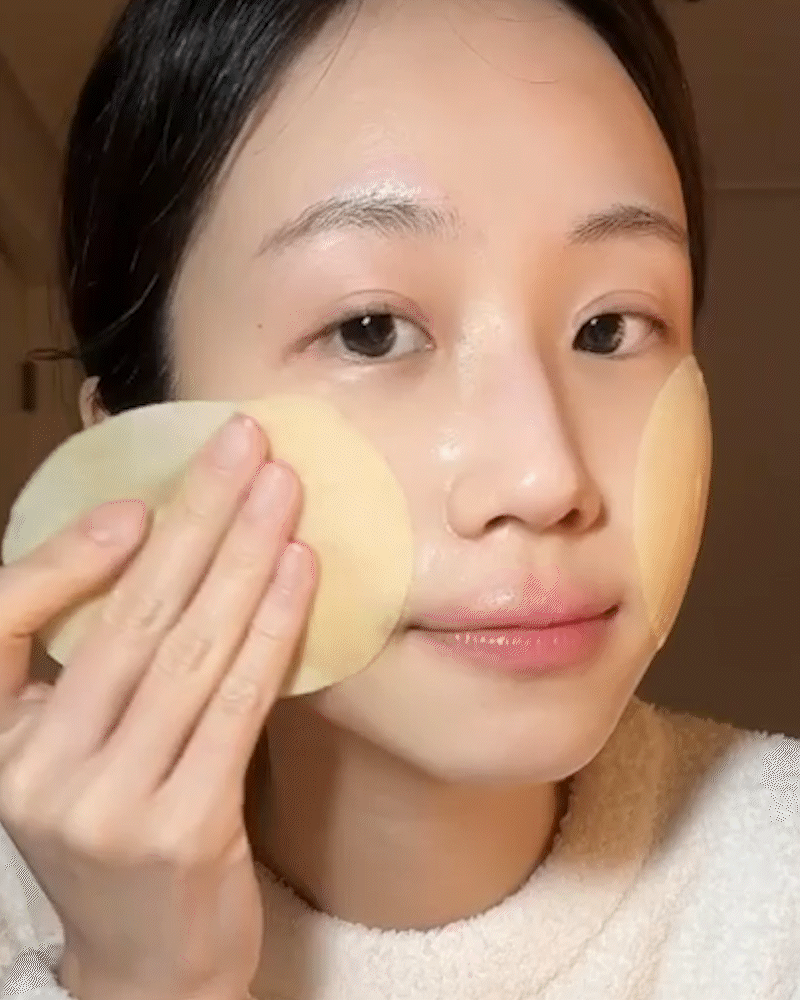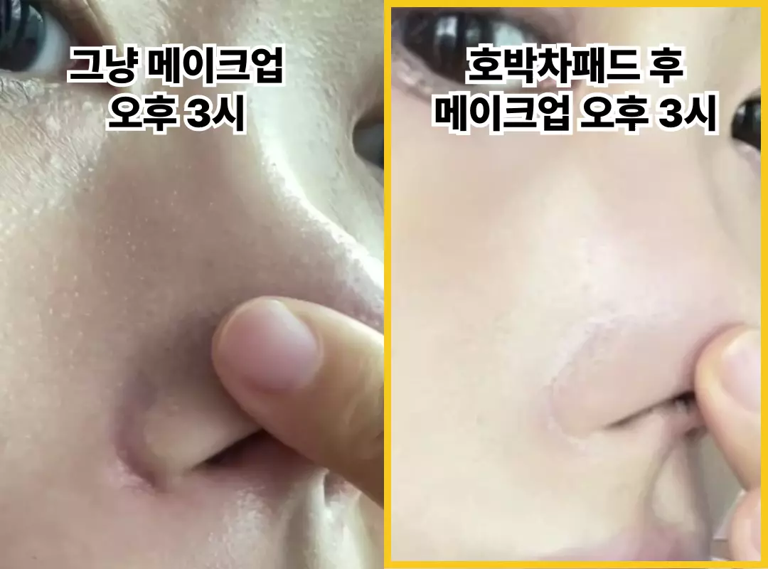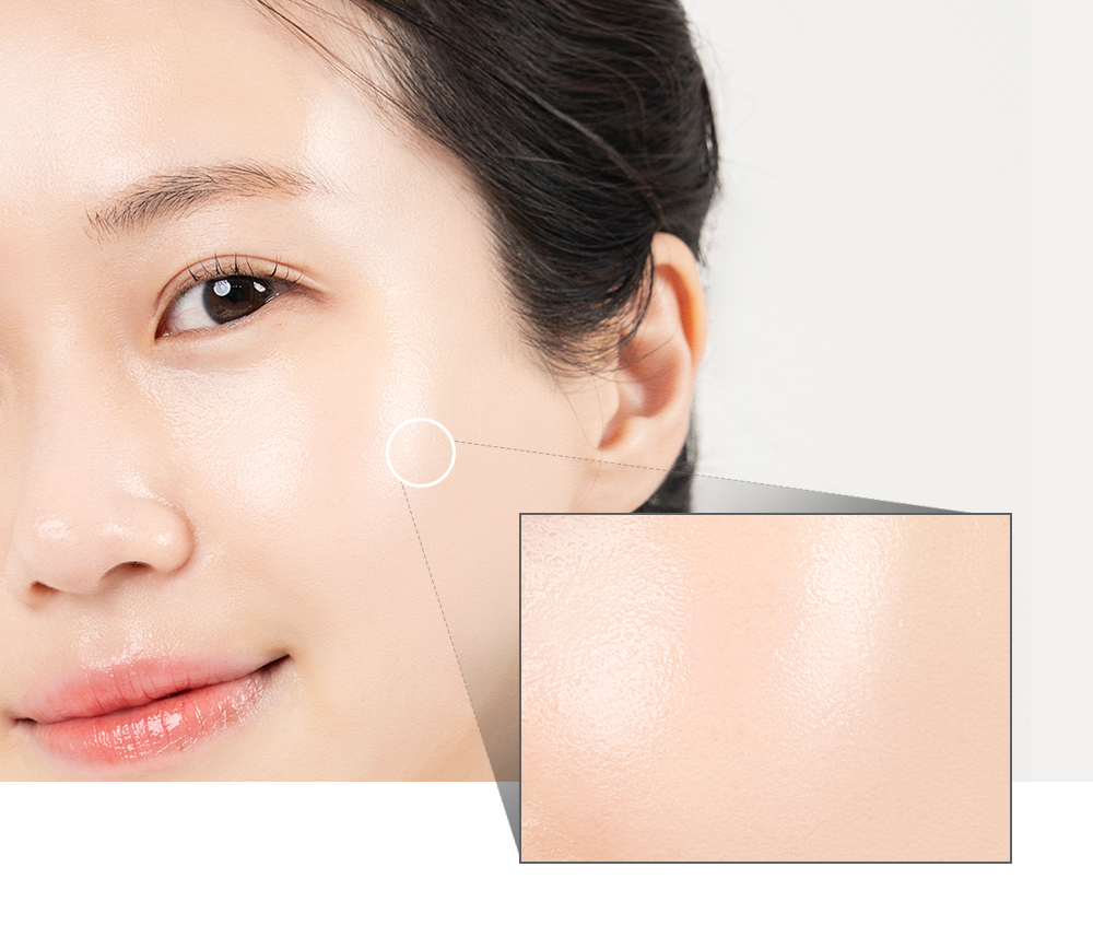 这是展示消肿和妆容贴合力提升4倍效果的前后对比照片。