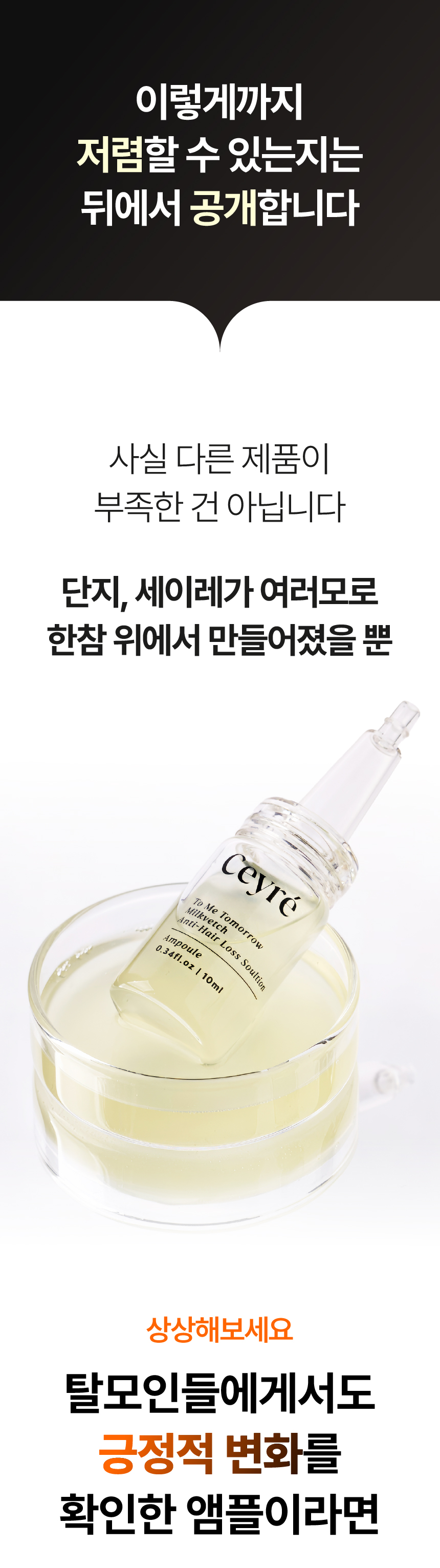 이 앰플이 어쩌면 모든 분들을 만족시킬 수는 없겠지만, 결국 가지고 계신 탈모 고민에 꼭 도움이 되리라 확신합니다. 와디즈 서포터님들과의 즐거운 소통을 기대하고 있습니다.
