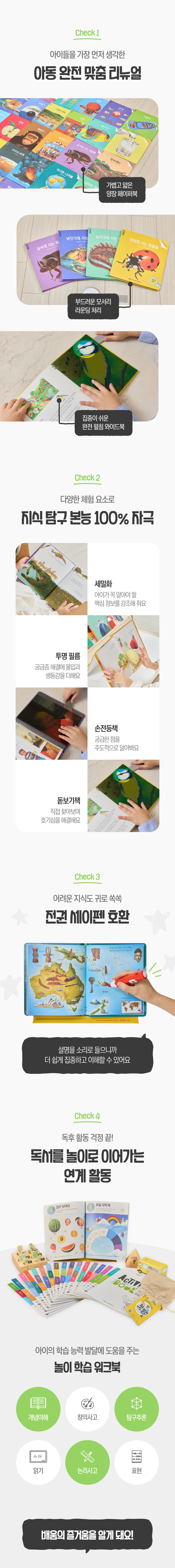 보드북, 플랩북, 양장본 등 다양한 형태의 책으로 아이들의 흥미를 끌어내고 몰입을 돕고 있습니다.