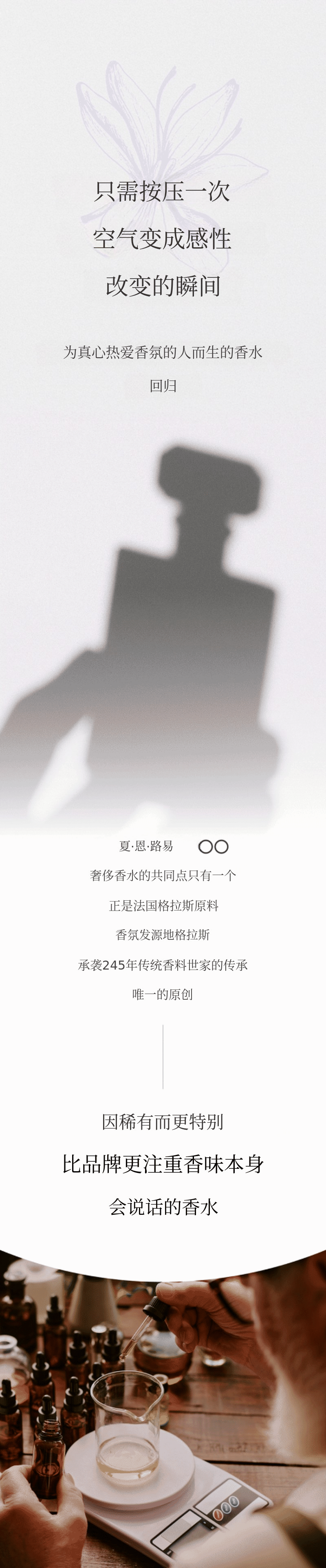 这一次,我们同样只甄选了法国格拉斯245年传统香氛工坊,供应给Ch*, D*, Louis**等高端香水品牌的顶级原料。