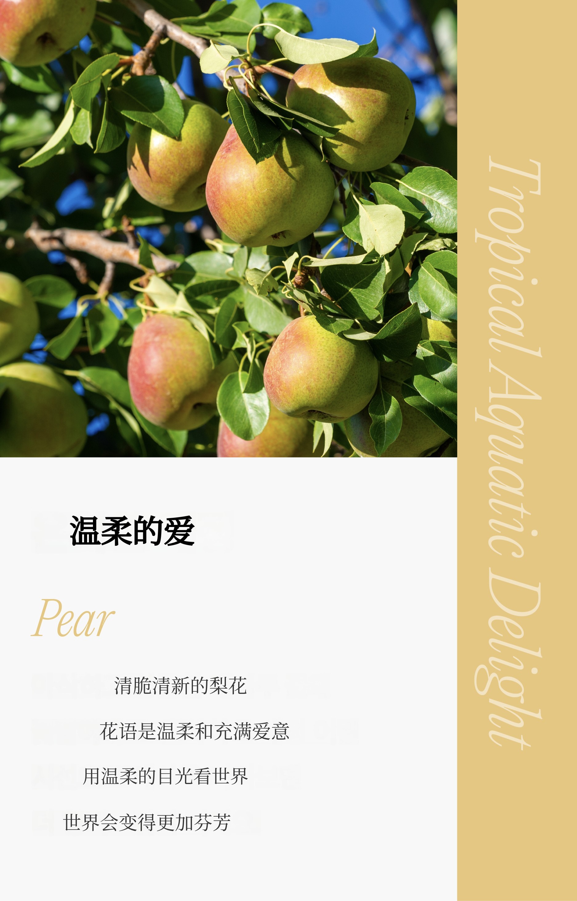 以充满活力和生机的多汁梨为中心的轻快香氛。