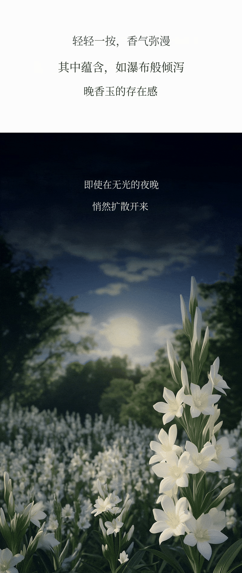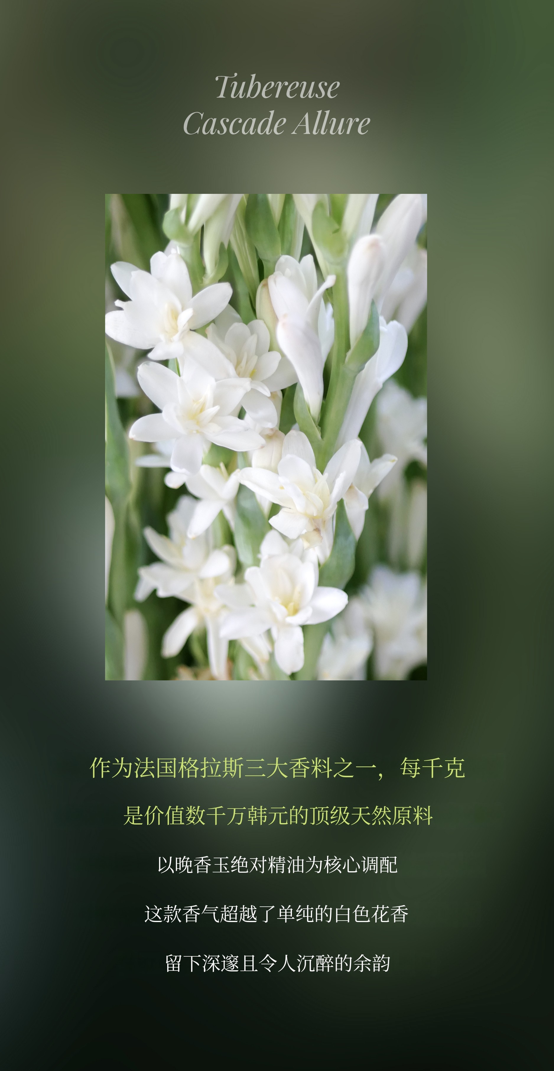 当那迷人而感性的晚香玉香气拂过,就像银河在黑夜的天空中流淌一般,深邃而迷人的余香将你引入陶醉的氛围。
